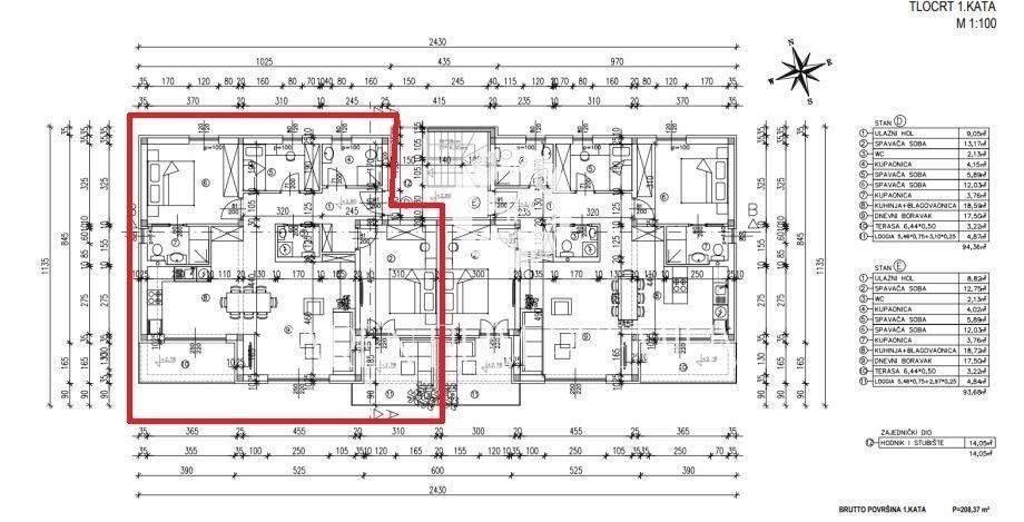 Istria - Poreč areaApartment for sale in a residential building with a total of 5 residential units with a own garden and a shared swimming pool in a quiet environment.The apartment on the first floor has a total area of ​​93.71 m2 and consists of an entrance hall, bathroom, toilet, three bedrooms, one of which has its own bathroom, while one bedroom has its own loggia, and a spacious living room with kitchen and dining room in an open space concept with access to a covered terrace.The first phase of air conditioning will be installed in all rooms, while electric underfloor heating will be installed in the bathroom. With an agreement with the investor, the buyer can install underfloor heating throughout the apartment for an additional fee until a certain stage of construction.The apartment has its own garden in part of the building"s courtyard and one parking space, with the option of purchasing another additional parking space.The exceptionally quiet location and proximity to the city make this apartment a good opportunity to solve housing issues or as an investment for tourist purposes.The apartment is being sold turnkey, and the expected completion date is mid-July 2025.