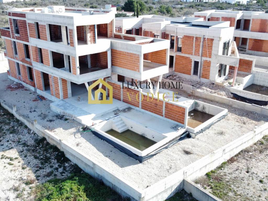 Cijeli objekt se gradi po posljednjem standardu gradnje sa najkvalitetnijim materijalima, od kojih izdvajamo ALU i PVC stolarija,klimatizirane sve prostorije, vrhunske keramičke pločice i sanitarije, bazen sa tehnikom, priprema za lift, podno grijanje u kupaonicama (ostale prostorije po željama kupca),...