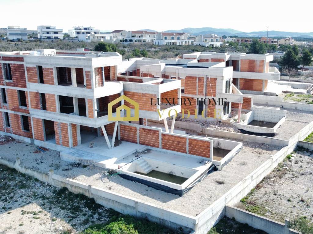 Na prodaju su luksuzni stanovi u modernoj zgradi od 4 stambene jedinice u mirnom dijelu Vodica, 900m od centra i 1000 m od plaže.