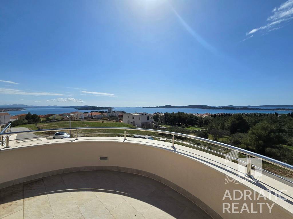On a hill above Vodice, from which one of the most beautiful views of the sea, islands, and the city can be seen, is this beautiful villa that combines top-notch construction, sophisticated design, and a perfect location.