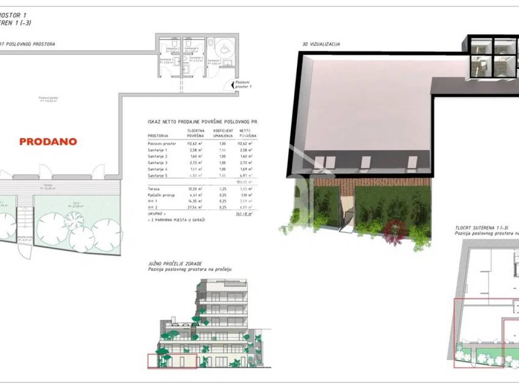 apartment 1/basement 2 (-2) = 99.70 m2 + terrace 16.47 m2 + 2 garage parking spaces SOLD