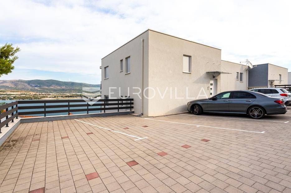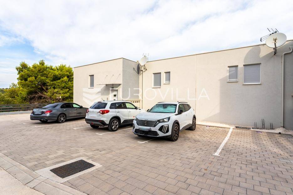 Lokacija je atraktivna na udaljenosti od 350 metara od plaže, hotela, restorana i trgovine. Centar Trogira udaljen je približno 4 kilometra, a Zračna luka Split oko 6 kilometara.Zbog svoje pozicije i rasporeda prostorija, stan je idealan za cjelogodišnje stanovanje, ali i kao investicija za turistički najam.