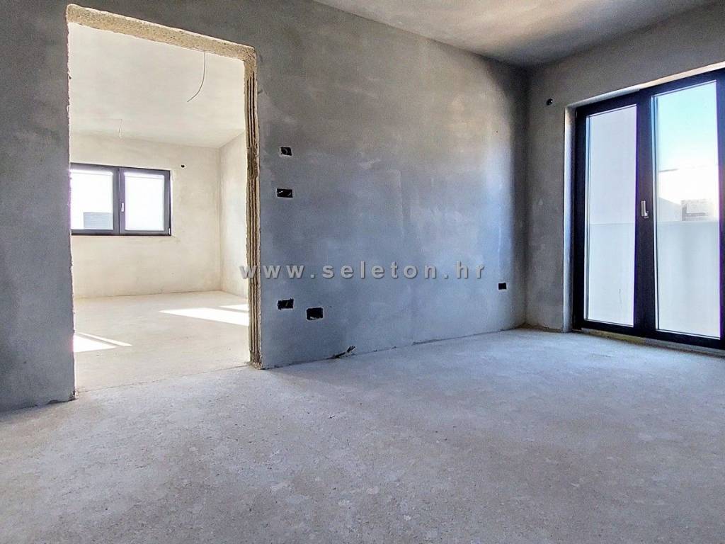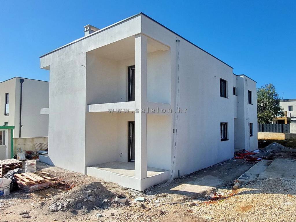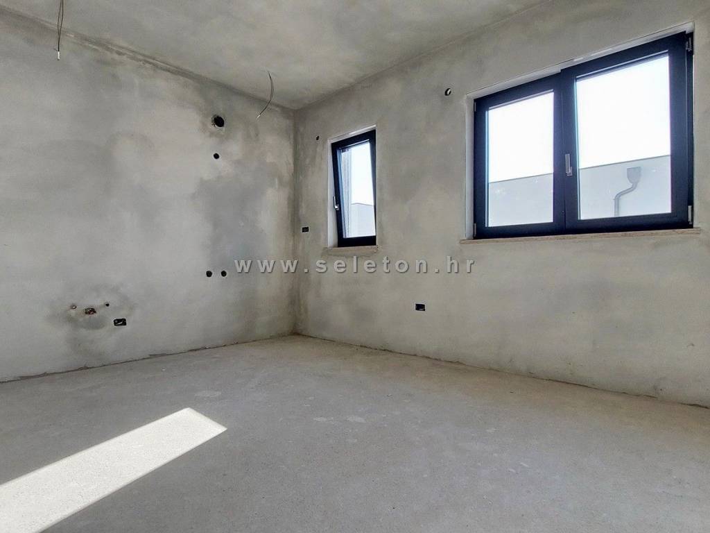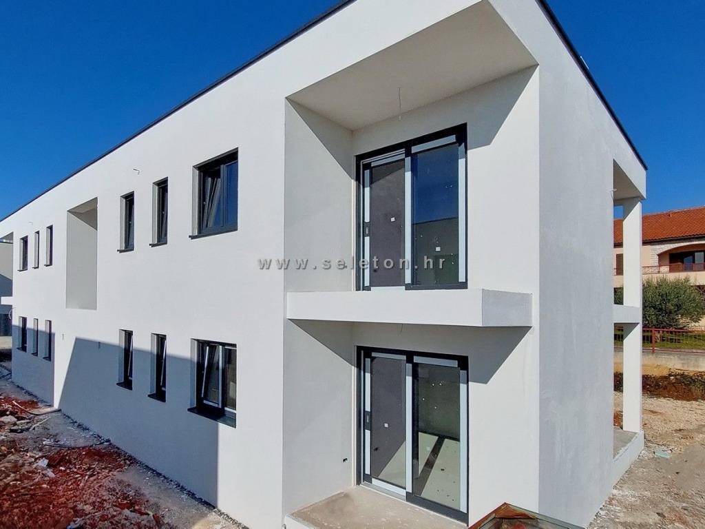 Poreč, in a modern building with only 4 residential units, an apartment under construction of 66 m² is for sale, consisting of a living area, a covered terrace, a hallway, 2 bedrooms and a bathroom. The apartment is located on the first floor of the building, has electric underfloor heating, 3 air conditioners, the apartment has a storage room of 3 m² and one parking space in front of the building, it is about 2 km from the sea and about 3 km from the city center. Energy class "A".
