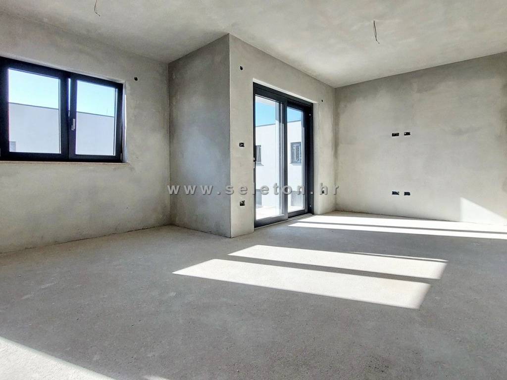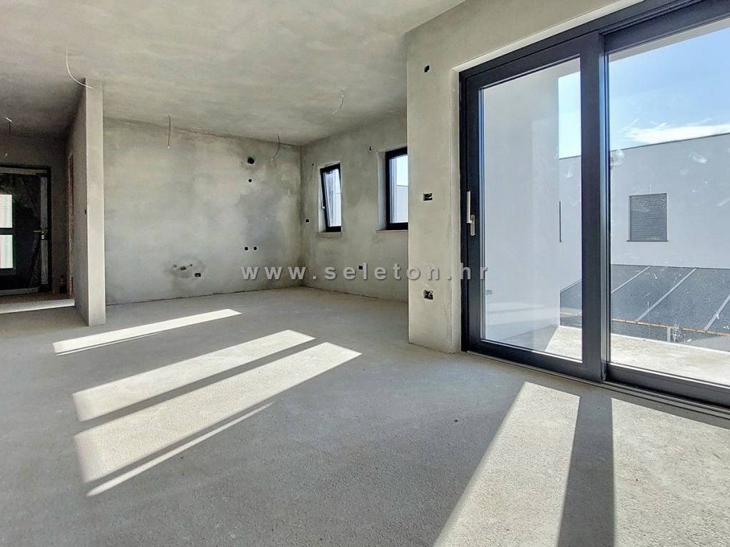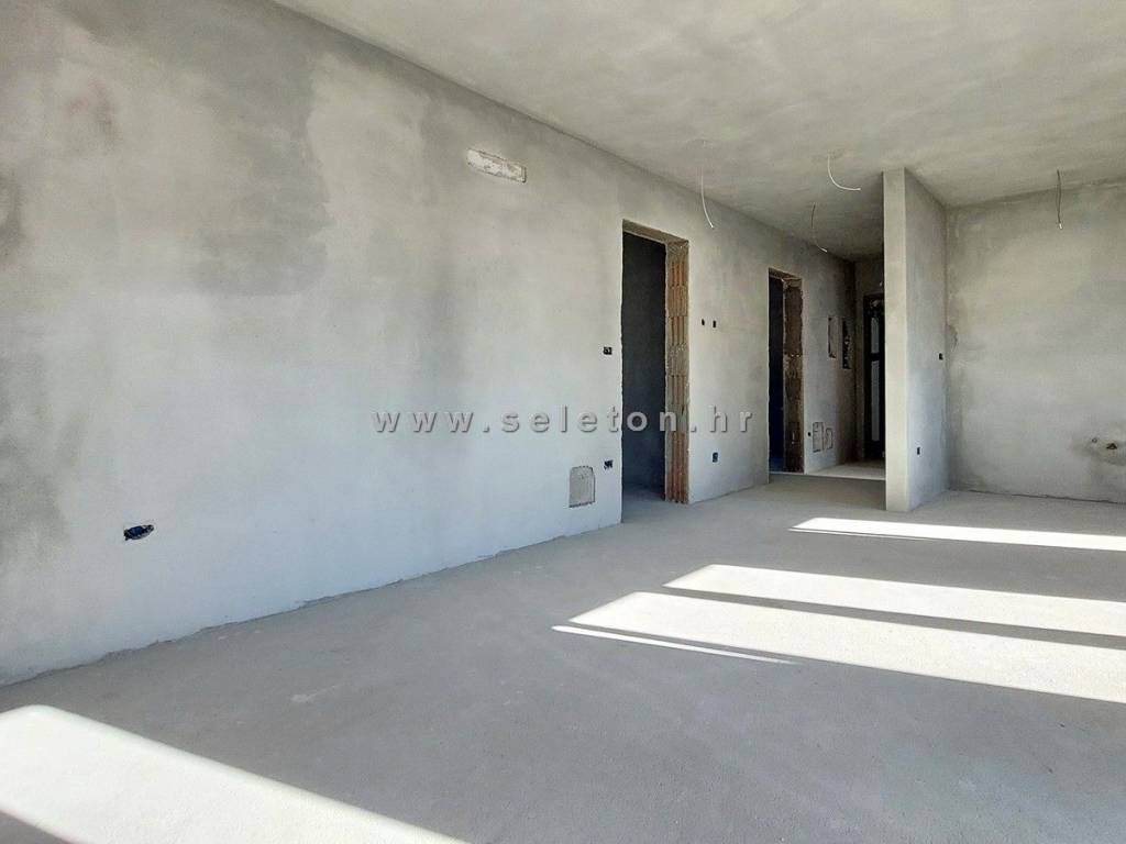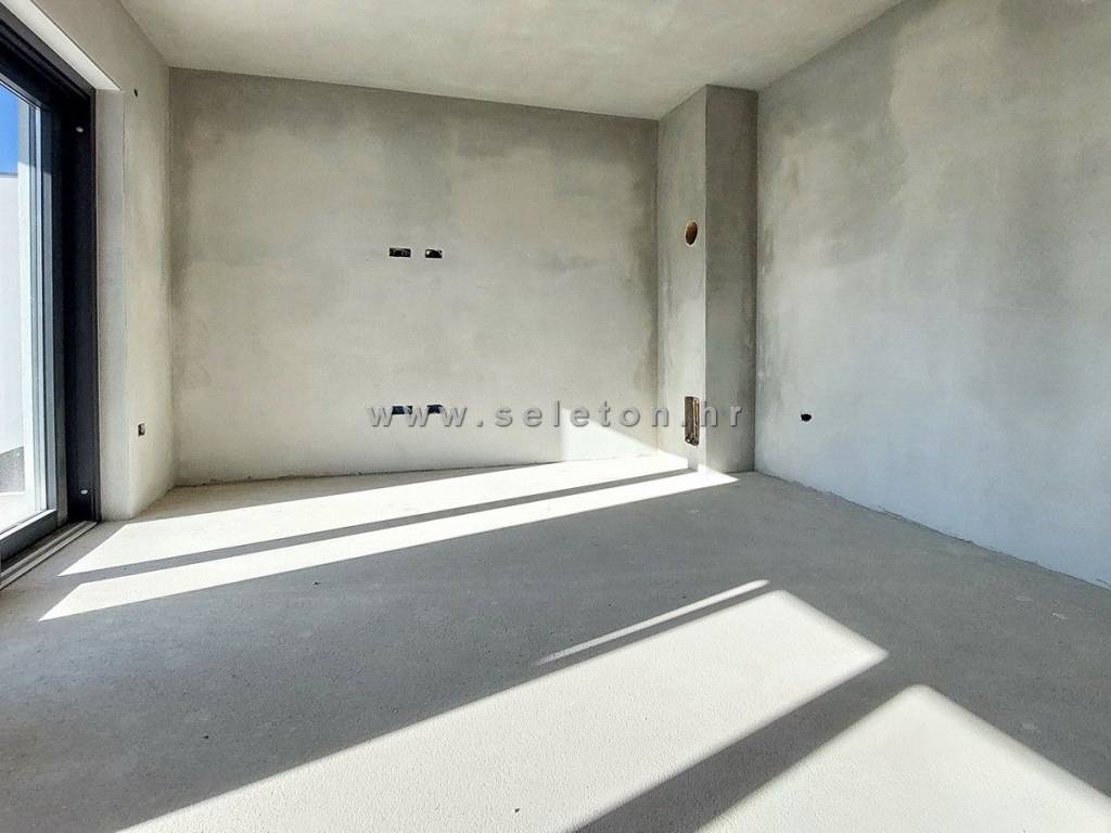 Poreč, in a modern building with only 4 residential units, an apartment under construction of 66 m² is for sale, consisting of a living area, a covered terrace, a hallway, 2 bedrooms and a bathroom. The apartment is located on the first floor of the building, has electric underfloor heating, 3 air conditioners, the apartment has a storage room of 3 m² and one parking space in front of the building, it is about 2 km from the sea and about 3 km from the city center. Energy class "A".