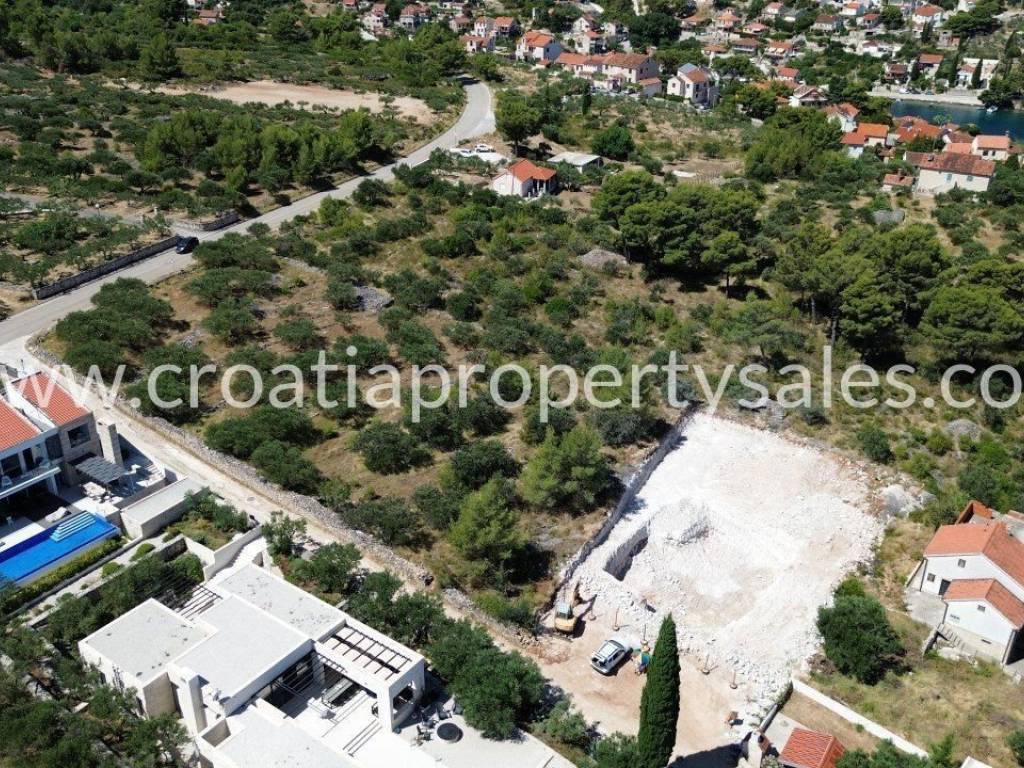 Dvije građevinske parcele na izvanrednoj lokaciji u malom pitoresknom mjestu. Nalazi se na kraju građevinske zone u vrlo mirnom okruženju.Izvanredan pogled na more. Parcele s pristupnim putem zajedno imaju 1.180 m2. Jedna parcela je 493 m2, druga 500 m2 i pristupni put 136 m2.Postoji projekt za gradnju dva objekta. Na cijelom zemljištu su stara stabla maslina.Sva potrebna infrastruktura nalazi se u neposrednoj blizini parcele.