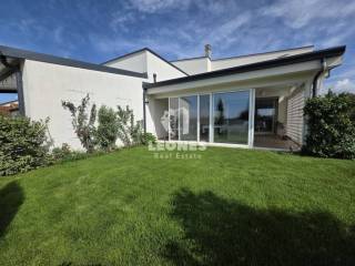 Apartment with garden in a quiet environment near Umag A new apartment with a garden in a quiet environment near Umag is for sale. The net usable area of ​​the apartment is 100 m 2 (total NUA 138 m2) and consists of a living room and kitchen, 3 bedrooms, bathroom, toilet, enclosed terrace, 165 m2 garden, summer kitchen, storage room and two parking spaces. The terrace was subsequently enclosed and thus gained an additional room for living throughout the year. The heating is underfloor via a heat pump while cooling is via fan coil units. The apartment is sold fully furnished with high-quality equipment and custom-made furniture and is ideal for living throughout the year. The distance of the apartment from the town of Umag and the beach is 5 km.www.leones-realestate.hr