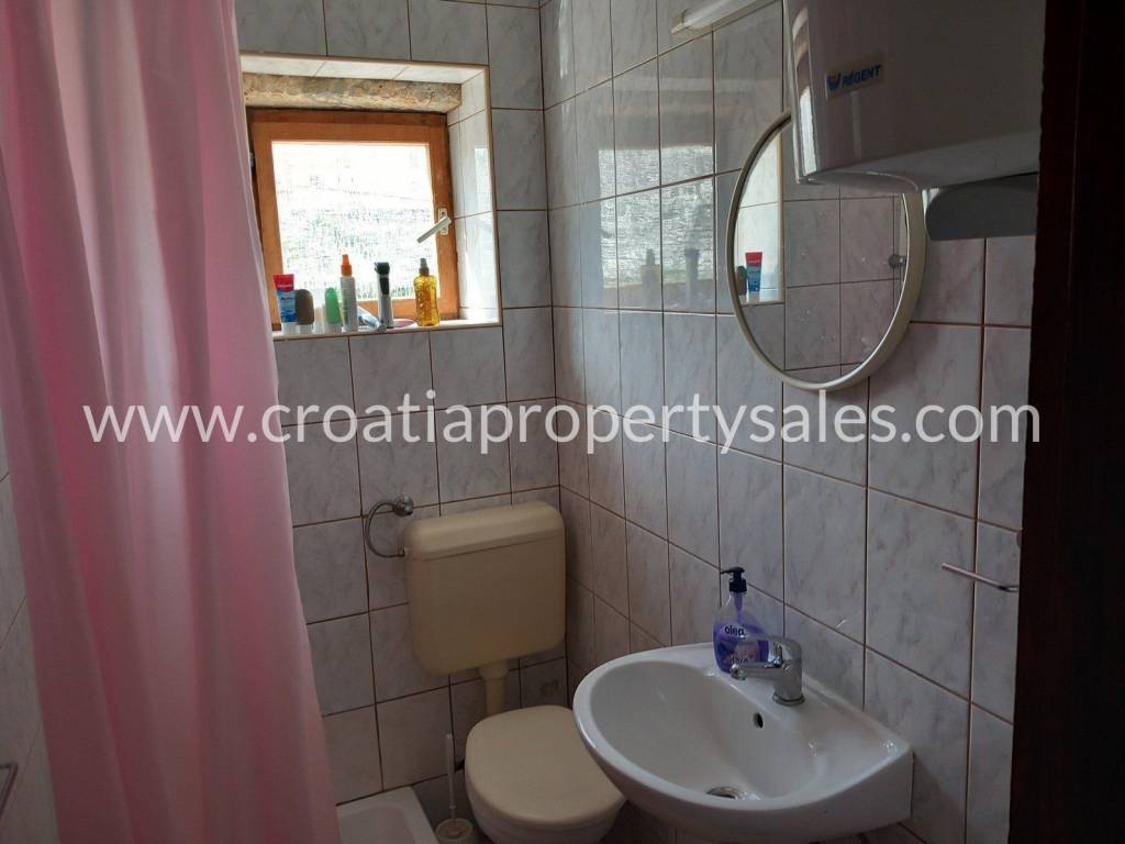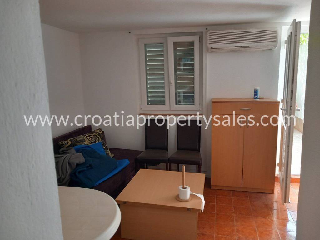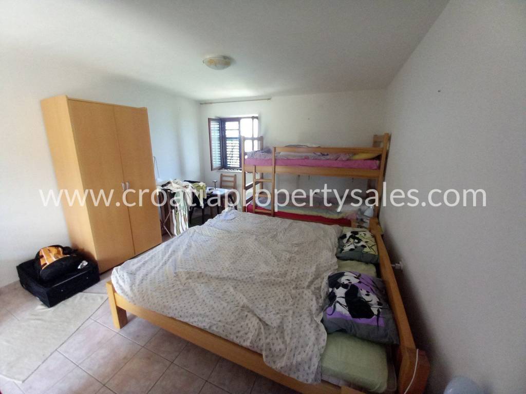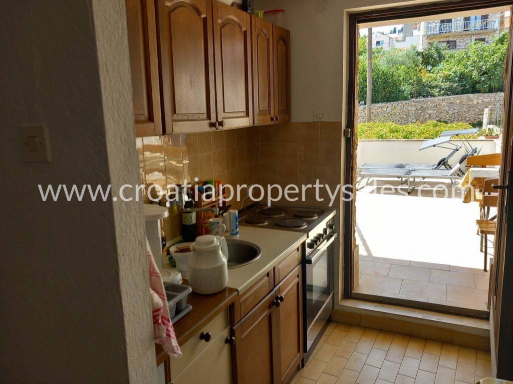 Old stone house, first row to the sea.On three floors, each floor is an apartment with a separate entrance.In the basement there is an apartment with kitchen, living room, bathroom, bedroom and yard with storage.On the upper ground floor is a studio apartment with a spacious terrace.The top studio apartment with a smaller access terrace. The property has a vehicle access and a parking space.The entrance is not from the side facing the sea.