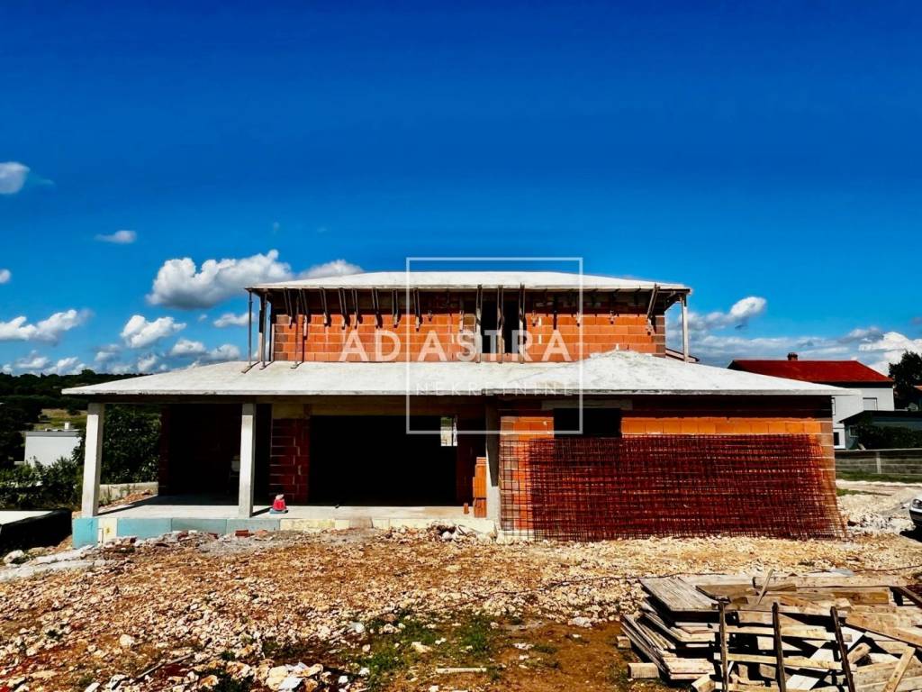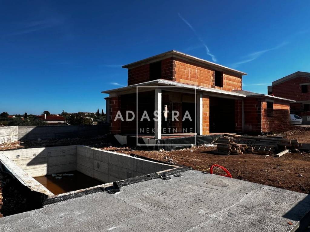 A holiday home with a swimming pool is for sale in the Rohbau phase. The house is located in a beautiful location on top of a hill with a view of the city, 3 km from the city center. It is located in a quiet area surrounded by family houses.