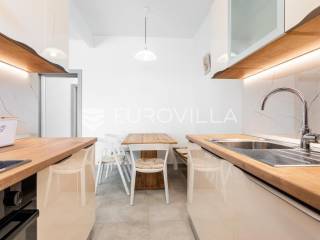 Trogir, komforan i u potpunosti renoviran dvosoban stan dostupan za dugoročan najam.Položen je u prizemlju obiteljske kuće, a podijeljen je na hodnik, kuhinju s blagovaonicom, dnevni boravak, dvije spavaće sobe ( od kojih jedna ima pripadajući WC ) i kupaonicu.Stanu pripada prostrana terasa površine 25 m2, mali vrt s umjetnom travom i jedno ograđeno vanjsko parkirno mjesto. Stambena površina iznosi 80 m2.Lokacija je odlična, mirna i sigurna, a samo nekoliko minuta hoda udaljena od strogo centra Trogira.Režije nisu uključene u cijenu.Za sva ostala pitanja, stojimo vam na raspolaganju.