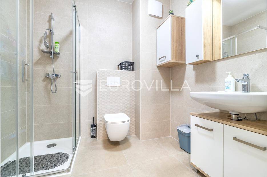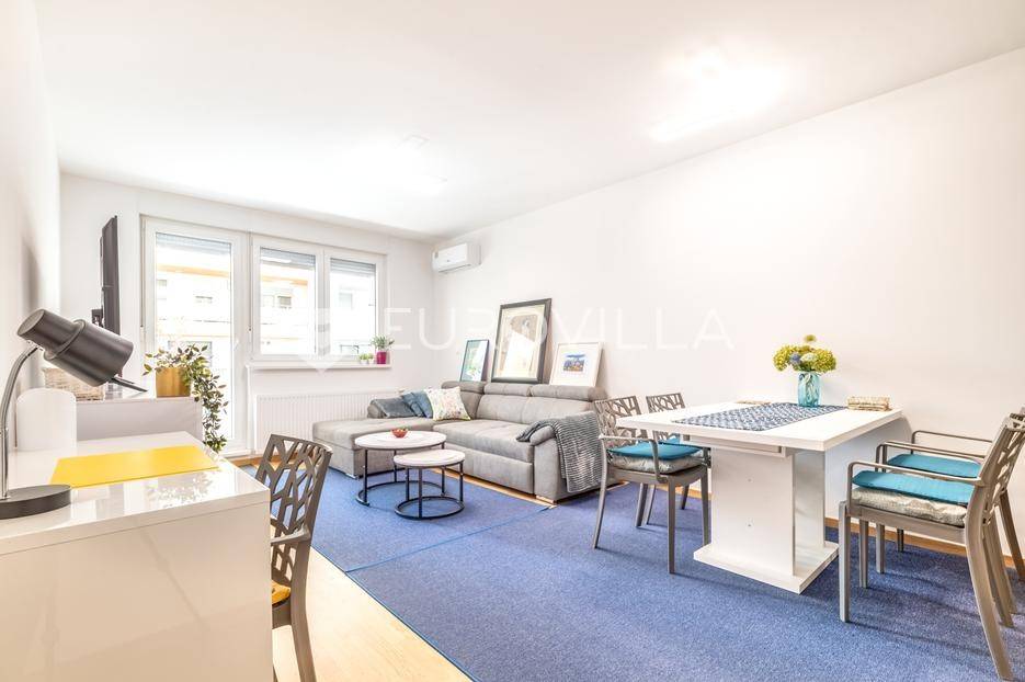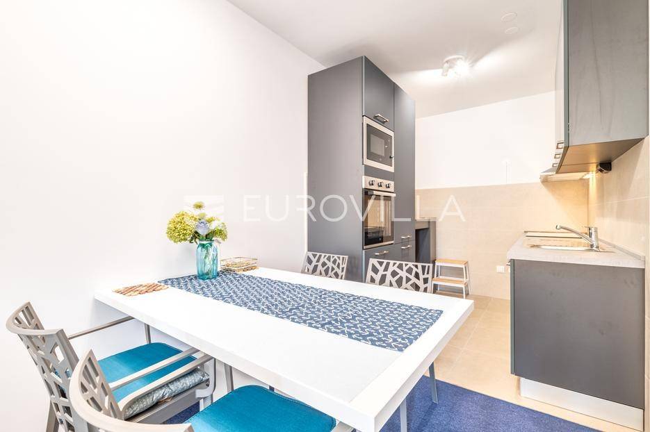 Zagreb, Lovinčićeva, dvosoban stan NKP 58 m2 za najam smješten u visokom prizemlju novogradnje, prvi najam.Sastoji se od ulaznog hodnika, dnevnog boravka s kuhinjom te izlazom na prostranu loggiu, spavaće sobe i kupaonice. Pripada mu parkirno mjesto u garaži.Stan je opremljen svim aparatima (kuhinjski aparati, novo posuđe, perilica sa sušilicom), cjelokupan namještaj je nov i nikad korišten.Zbog svoje mikrolokacije, kvalitetne izvedbe i opremljenosti, pruža miran i ugodan život. U blizini centra, javnog prijevoza, trgovina te svih potrebnih sadržaja.Za dodatna pitanja stojimo na raspolaganju.