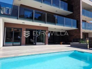 Rijeka, Kantrida, moderan četverosoban stan NKP 128 m2 s privatnim bazenom, pogled na more.Sastoji se od ulaznog hodnika, dnevnog boravka povezanog sa kuhinjom i blagavaonicom otvorenog tlocrta, tri spavaće sobe, jedne kupaonice te prostranog vrta od 276 m2 s privatnim bazenom s kojeg se pruža pogled na more.Stanu također pripadaju dva garažna parkirna mjesta, te spremište.Zgrada ima ukupno pet stambenih jedinica. Smještena je na jednoj od najpoželjnijih lokacija u gradu Rijeci udaljena svega 200m od mora.Sve ostale informacije na upit.