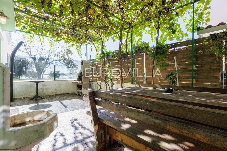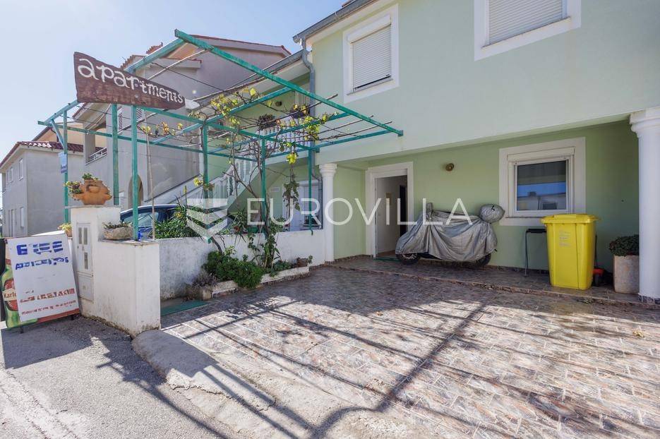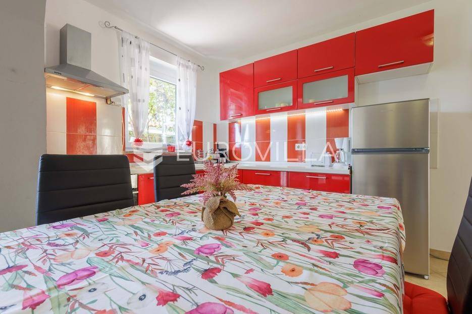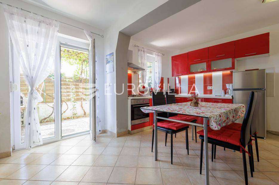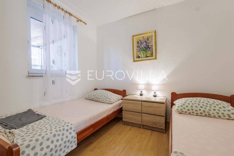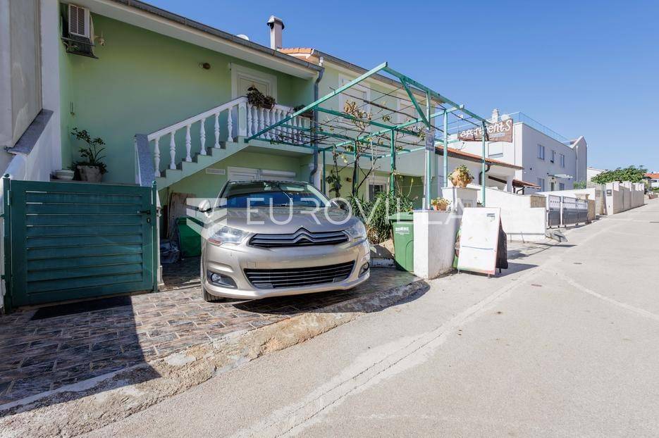 Na prodaju je kuća smještena svega stotinjak metara od mora, u mirnom okruženju koje nudi potpuni ugođaj mediteranskog života. Objekt se sastoji od dvije etaže, ukupne površine oko 160 m2, osmišljen tako da pruža udobnost i privatnost za veću obitelj ili za turistički najam.Na katu se nalazi prostrani dnevni boravak povezan s kuhinjom i izlazom na zatvorenu terasu s prekrasnim pogledom na more. U nastavku se nalaze tri spavaće sobe, kupaonica, klima uređaj te peć na drva koja daje poseban šarm i toplinu prostoru.Prizemlje nudi dodatnih 75 m2 stambene površine s dnevnim boravkom i kuhinjom, dvije spavaće sobe, kupaonicom i izlazom na terasu gdje se nalazi jacuzzi i solarni tuš, idealni za opuštanje u toplim danima. Kuća raspolaže s dva parkirna mjesta, a dodatna pogodnost je potpuna komunalna infrastruktura uključujući kanalizaciju i optički internet.Ova kuća predstavlja odličnu priliku za one koji traže dom blizu mora, s dovoljno prostora i sadržaja za ugodan boravak tijekom cijele godine ili kao investiciju za turizam.Za više informacija ili dogovor oko razgleda, slobodno nam se obratite.