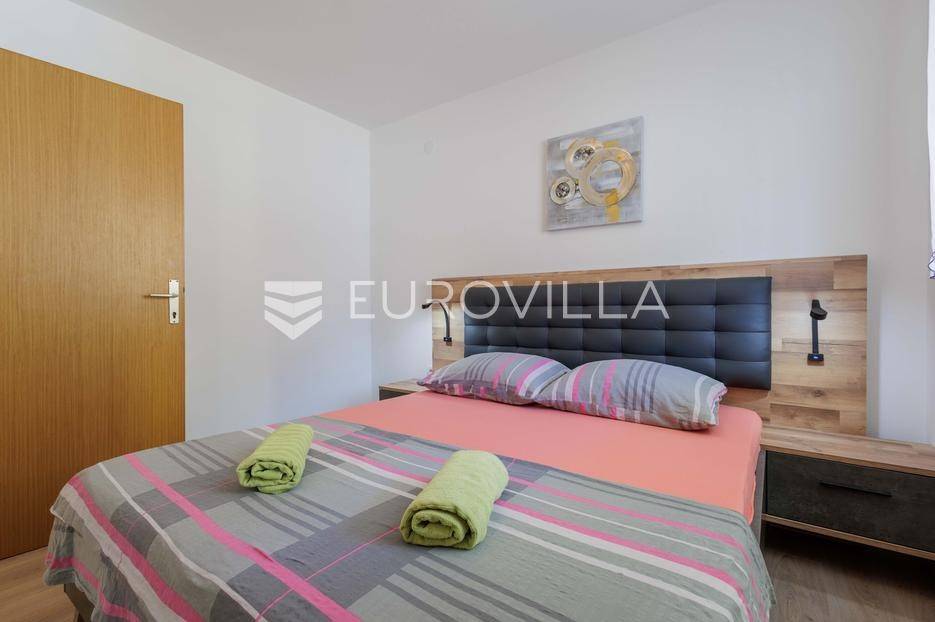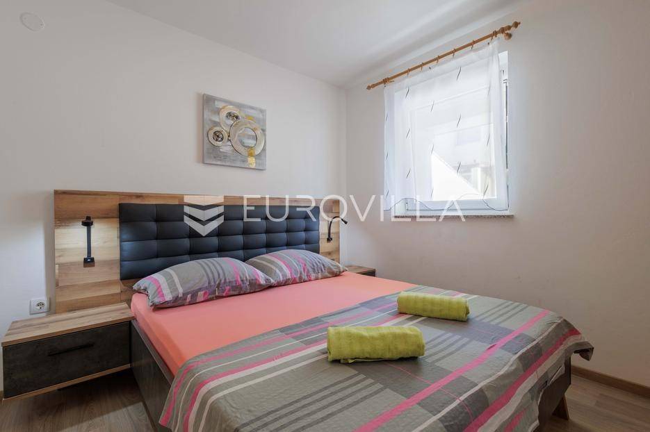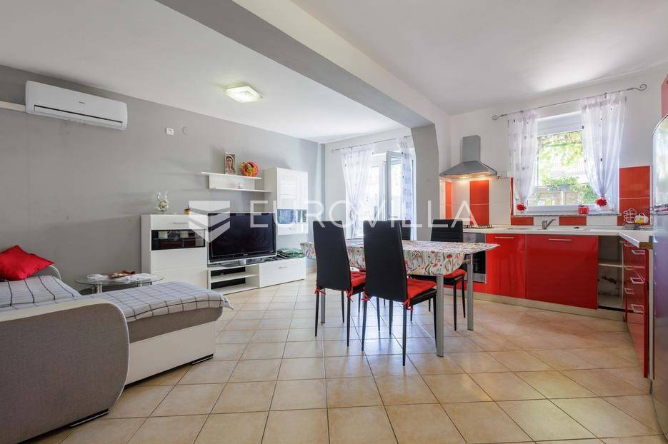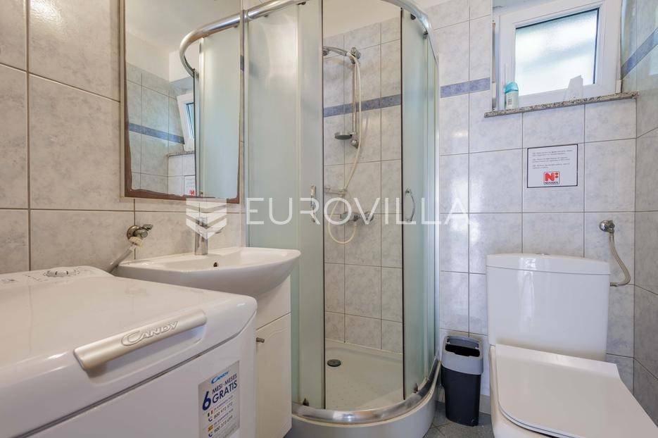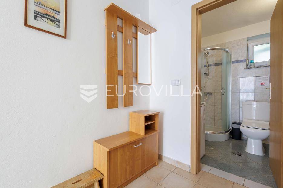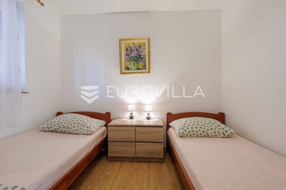 Na prodaju je kuća smještena svega stotinjak metara od mora, u mirnom okruženju koje nudi potpuni ugođaj mediteranskog života. Objekt se sastoji od dvije etaže, ukupne površine oko 160 m2, osmišljen tako da pruža udobnost i privatnost za veću obitelj ili za turistički najam.Na katu se nalazi prostrani dnevni boravak povezan s kuhinjom i izlazom na zatvorenu terasu s prekrasnim pogledom na more. U nastavku se nalaze tri spavaće sobe, kupaonica, klima uređaj te peć na drva koja daje poseban šarm i toplinu prostoru.Prizemlje nudi dodatnih 75 m2 stambene površine s dnevnim boravkom i kuhinjom, dvije spavaće sobe, kupaonicom i izlazom na terasu gdje se nalazi jacuzzi i solarni tuš, idealni za opuštanje u toplim danima. Kuća raspolaže s dva parkirna mjesta, a dodatna pogodnost je potpuna komunalna infrastruktura uključujući kanalizaciju i optički internet.Ova kuća predstavlja odličnu priliku za one koji traže dom blizu mora, s dovoljno prostora i sadržaja za ugodan boravak tijekom cijele godine ili kao investiciju za turizam.Za više informacija ili dogovor oko razgleda, slobodno nam se obratite.