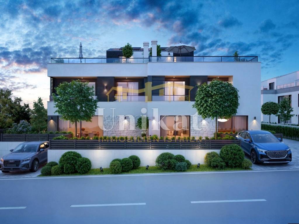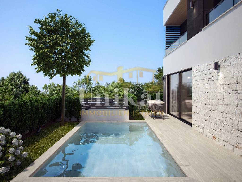 This semi-detached house is located on the outskirts of Poreč, 3 km from the centre of Poreč and 2.5 km from the nearest beach. The neighbourhood consists mainly of newly built residential buildings, it is a neat residential area.