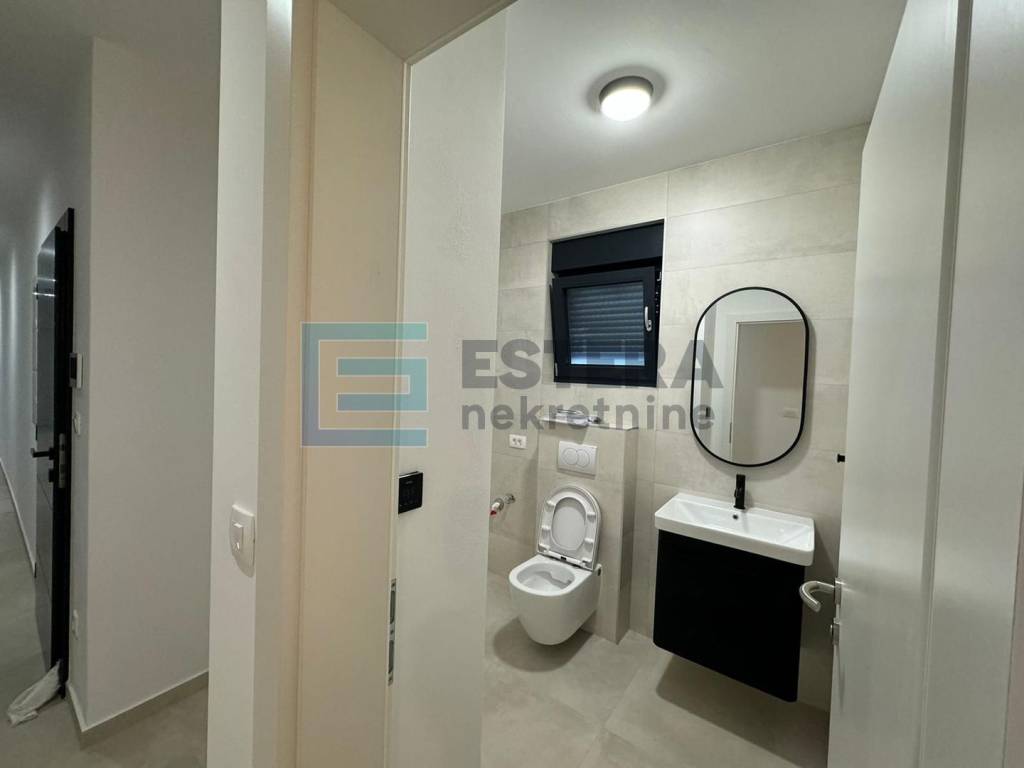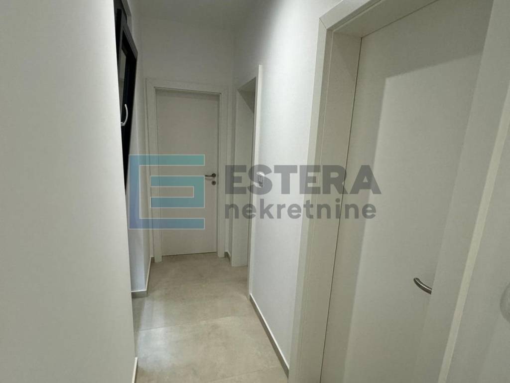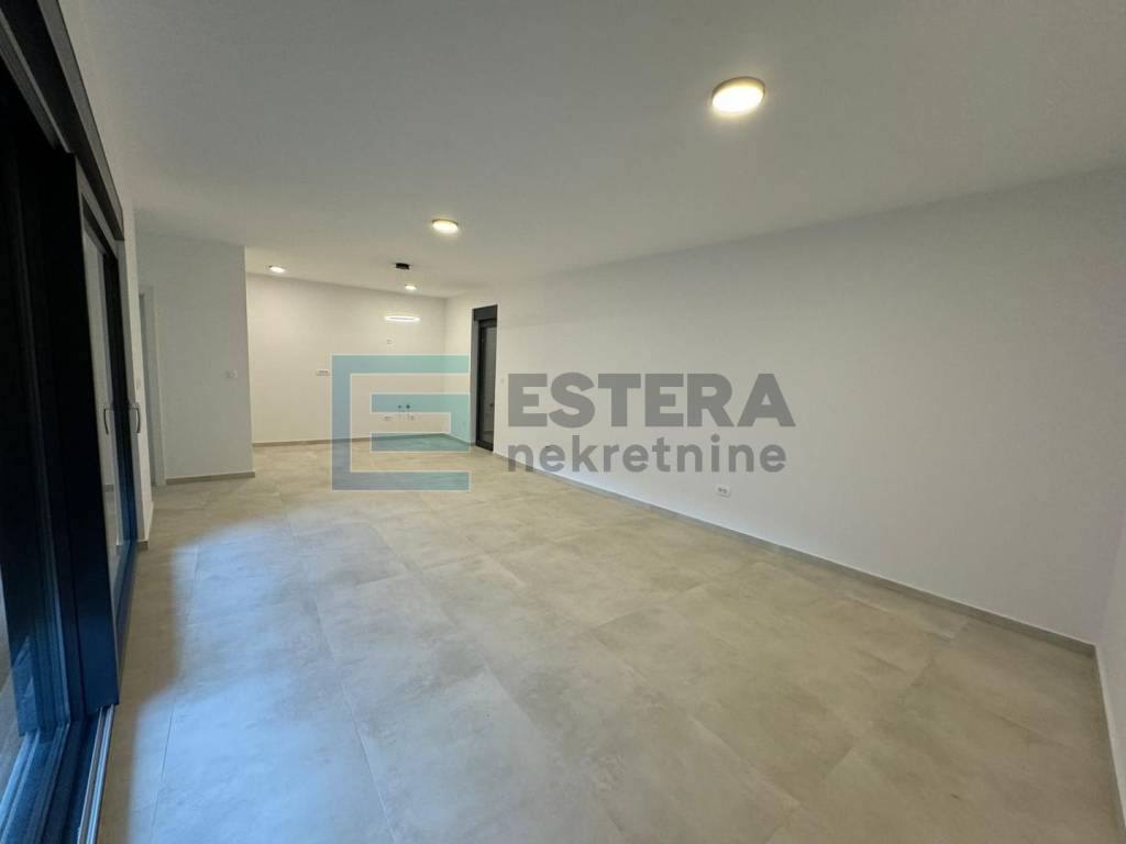 Apartman se sastoji od ulaznog hodnika, dnevnog boravka s kuhinjom i blagovaonicom, kupaonice, WC-a te natkrivene terase. Apartmanu pripada i nenetkrivena terasa (21 m2), vrt te dva parkirna mjesta u dvorištu.