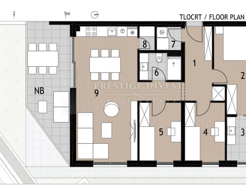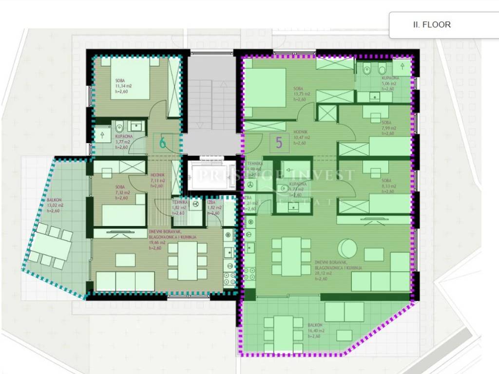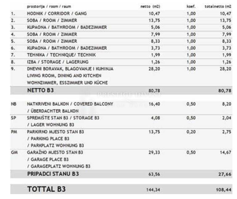For sale is a spacious three-bedroom apartment on the first floor with sea views and a total usable area of ​​79.8 m2. The apartment is modernly arranged, with additional outdoor spaces, parking spaces and storage.