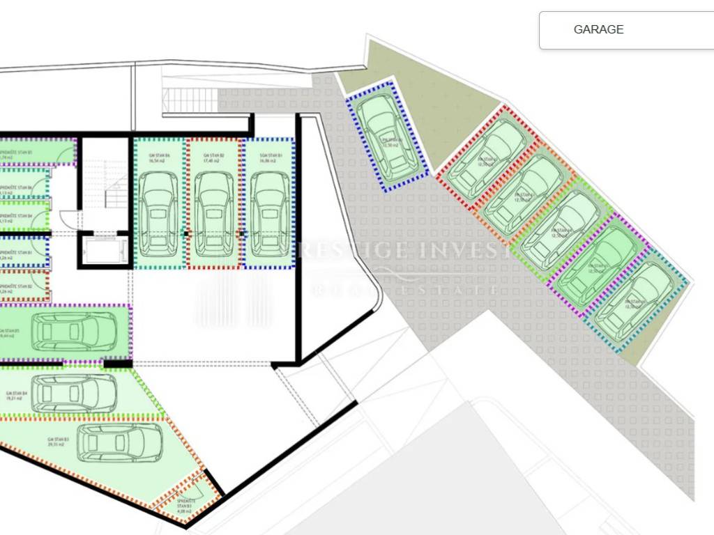 15. Underground garage with comfortable parking spaces with derived power supply for smart chargers for electric vehicles.