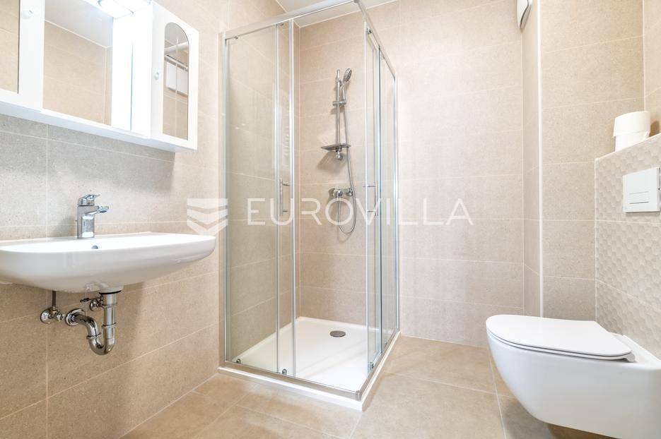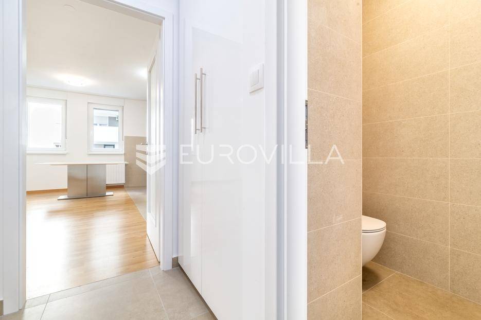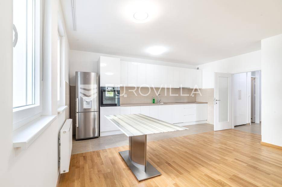 Zagreb, Lovinčićeva, trosoban stan NKP 82 m2 za najam smješten u visokom prizemlju novogradnje, prvi najam.Sastoji se od ulaznog hodnika, dnevnog boravka s kuhinjom te izlazom na prostranu loggiu, dvije spavaće sobe koje također imaju izlaz na loggiu, zasebnog wc-a i kupaonice. Pripada mu vanjsko parkirno mjesto.Stan je opremljen svim aparatima (kuhinjski aparati, novo posuđe, perilica sa sušilicom), iznamljuje se nenamješten točnije nedostaju mu dva kreveta i garnitura. Stan je nov, nikada prethodno korišten te je opremljen sustavom klimatizacije.Zbog svoje mikrolokacije, kvalitetne izvedbe i opremljenosti, pruža miran i ugodan život. U blizini centra, javnog prijevoza, trgovina te svih potrebnih sadržaja.Za više informacija kontaktirajte nas.