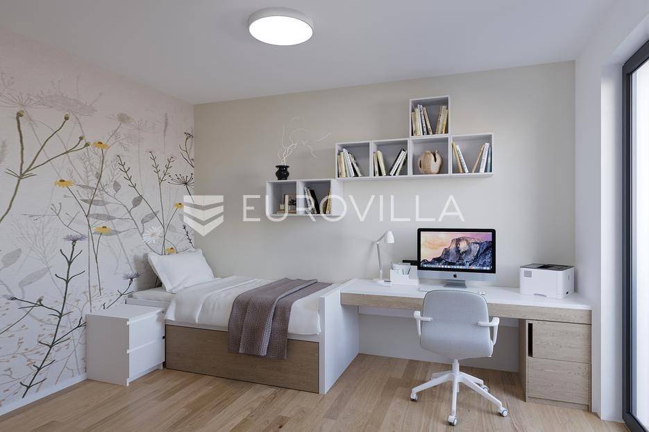 Smješteni izvan gradske vreve, ali odlično povezani s centrom Zagreba (vlak 14 min, automobil 20 min), ovi stanovi nude udobnost i mir, uz brojne sadržaje idealne za obiteljski život - dječja igrališta, veliki park u izgradnji i zelene površine za šetnje i rekreaciju.Četverosoban stan S22 zatvorene površine 101m2 kojem dodatno pripadaju terase površine 24,80m2 i 14,60m2. Sastoji se od ulaznog prostora, komforne kupaonice, open space kuhinje i blagovaone s dnevnim boravkom i izlazom na terasu te master spavaće sobe s vlastitom kupaonicom te dvije spavaće/radne sobe. Sve tri sobe imaju izlaz na drugu terasu.U prodaji su moderni stanovi u sklopu novog stambenog projekta koji objedinjuje mirnu prirodnu okolinu i vrhunsku funkcionalnost suvremene arhitekture. Ako tražite dom koji nudi privatnost, kvalitetu, sigurnost i izvrsnu povezanost s gradom - ovo je pravo mjesto za vas!Planirano useljenje: lipanj 2027.Arhitektura i gradnja:Konstrukcija: armirano betonski nosivi zidovi debljine 20 cm, armirano betonske međukatne monolitne ploče debljine 20 cmPregradni zidovi: prema hodniku Silka blokovi 17,5 cm + obostrano mineralna vuna i dvostruke gipskartonske ploče (povećana toplinska i zvučna izolacija)pregradni zidovi između stanova Silka blokovi 11,5 cm + obostrano mineralna vuna i dvostruke gipskartonske ploče (povećana zvučna izolacija)pregradni zidovi unutar stanova dvostruke gipskartonske ploče na metalnoj potkonstrukciji s ispunom od mineralne vune, ukupne debljine 10 i 15 cm (povećana zvučna izolacija)Fasada: „ETICS“ fasadni sustav s pločama ekspandiranog polistirena debljine 15 cm ili pločama mineralne vune debljine 15 cm, vanjski zidovi završno obrađeni silikatnom fasadnom žbukom.Vanjska stolarija: PVC stijene s dvostrukim IZO ostakljenjem (1 Low E) i komarnicima, dimenzija „od poda do stropa“ (240+20 cm), u antracit boji izvana te u bijeloj boji iznutraDetalji: Aluminijske vanjske klupčice u boji stolarije te aluminijske električne rolete s toplinskom izolacijom.Komforno grijanje i klimatizacija:Grijanje: za grijanje prostora i za zagrijavanje potrošne tople vode koristit će se protočni kondenzacijski plinski bojler, grijanje izvedeno kao podno, čije se cijevi postavljaju unutar plivajućeg poda, u kupaonicama dodatno električne kupaonske ljestve, spojene na sustav podnog grijanja, s mogućnošću samostalnog reguliranja i korištenja.Hlađenje: hlađenje multi split inverterskim uređajima čije su vanjske jedinice smještene na krovu zgrade, svaki stan opremljen jednom unutarnjom klima jedinicom.Interijer - spoj elegancije i funkcionalnosti:svijetla visina 260 cm (od gotovog poda do stropa)ulazna vrata protuprovalna i vatrootpornaunutarnja stolarija građevinske visine 220 cm, svijetle visine 215 cmvišeslojni parket 1. klase u hodniku, dnevnom boravku, blagovaonici i sobamakeramičke pločice 1. klase u sanitarijama, kuhinjama, balkonima i terasamavisokokvalitetna sanitarna oprematuš kade u ravnini s gotovim podom sa staklenim tuš kabinamaležeće kade sa staklenom pregradomkonzolni umivaonici za wc-ekupaonski komplet za kupaonice (umivaonik s donjim ormarićem, ogledalom i rasvjetom)ugradbeni vodokotlić s konzolnom wc školjkomzidne i podne keramičke pločice 1. klase, max. dimenzija 120x60, spojene „gerung“ sustavomNapomena: Kupnja garažnog ili vanjskog parkirnog mjesta i spremišta obavezna je.Za sve dodatne informacije stojimo Vam na raspolaganju.