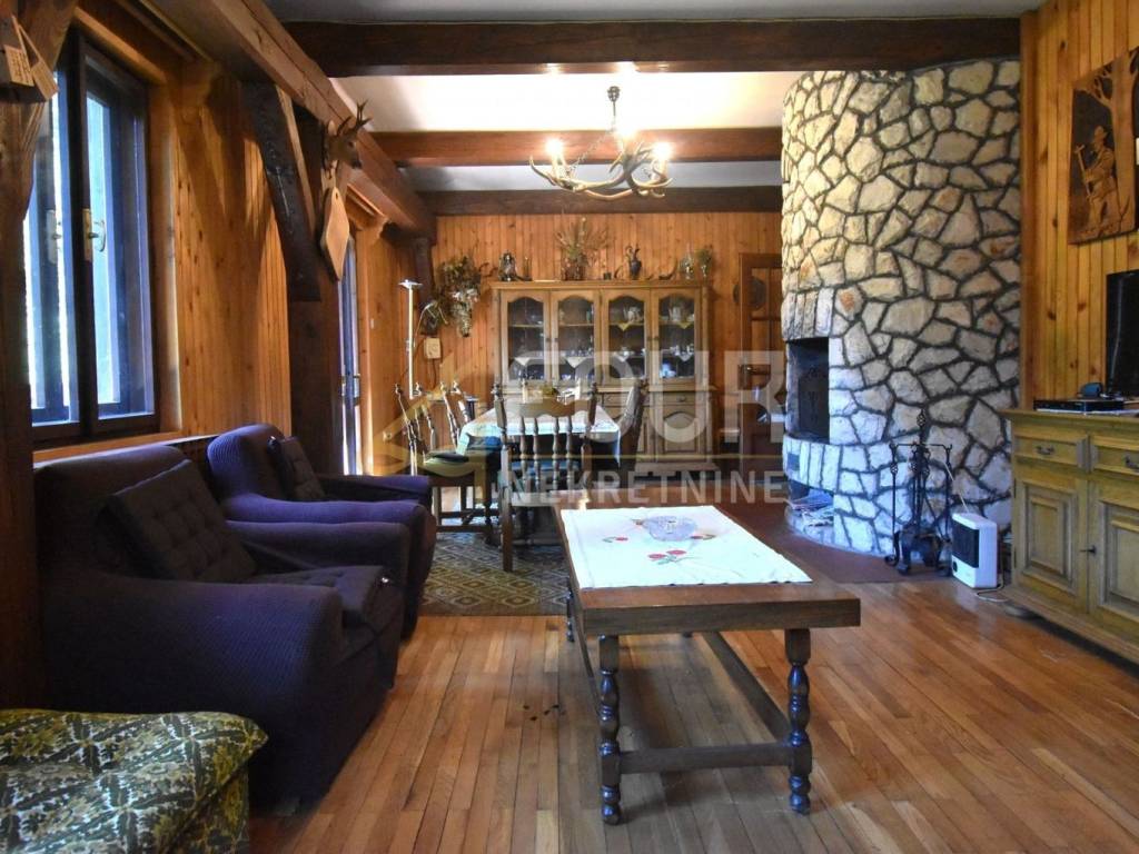 For sale is a beautiful estate located in the heart of Gorski Kotar, near Tršće, spreading over more than 128,000 square meters. Access to the property is provided by an asphalt road, and the house is situated on top of a hill within a nearly 6,000-square-meter yard, offering peace, quiet, and fresh air, ideal for escaping the hustle and bustle of the city.