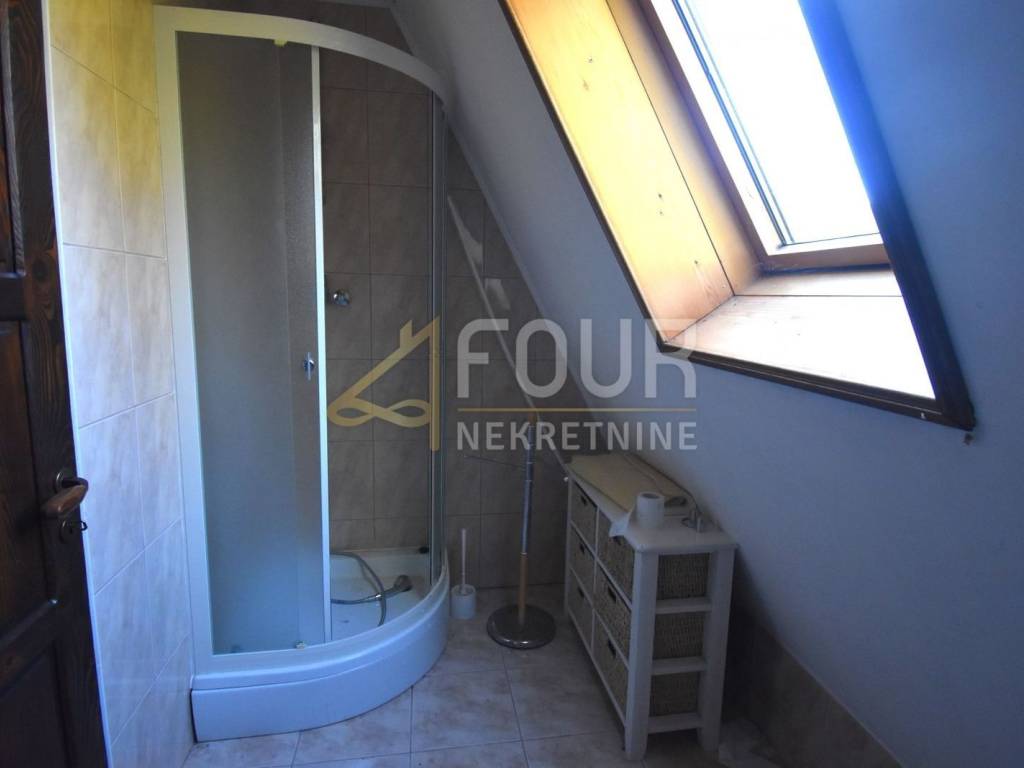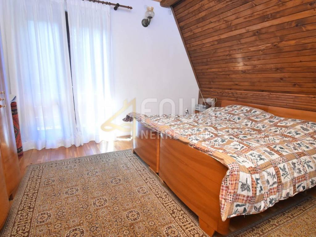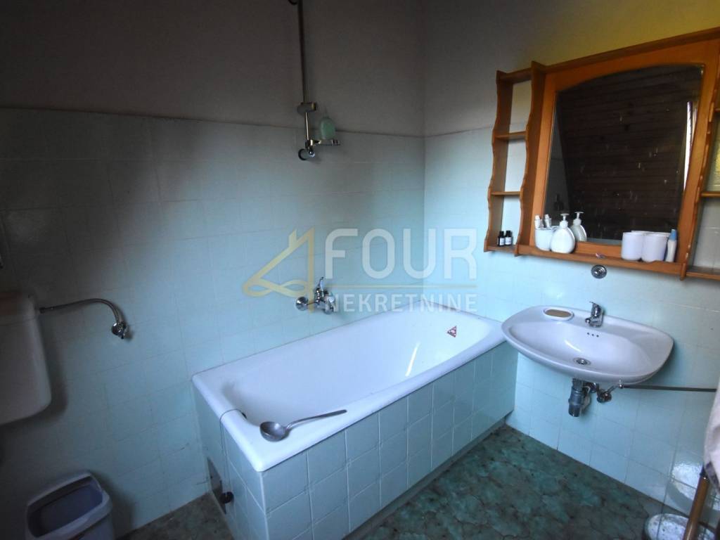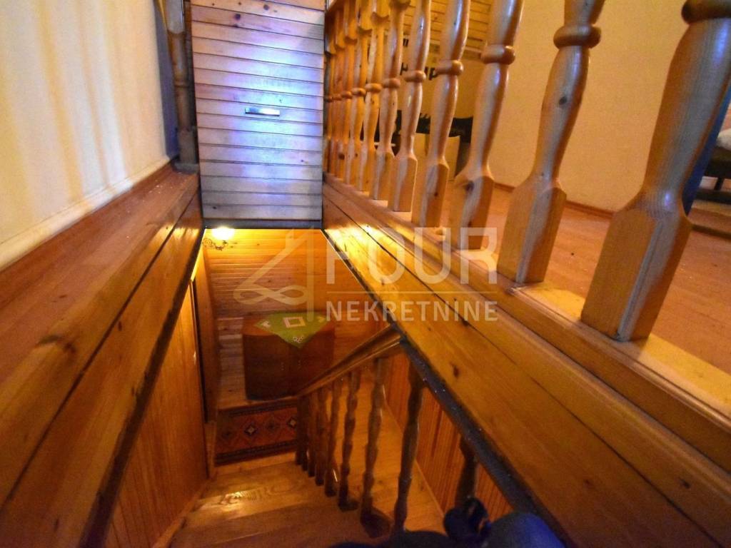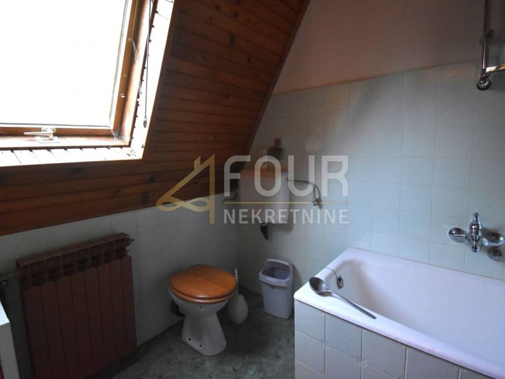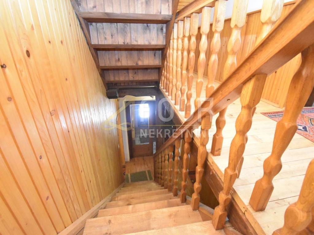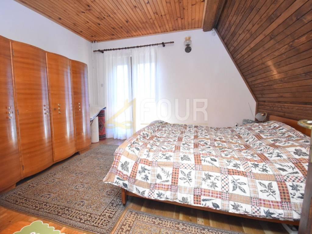 The house has been maintained in its original condition but offers enormous potential for customization according to personal preferences. It consists of a basement with a garage and boiler room, with internal stairs leading to the elevated ground floor. The main entrance is located on the side, and the interior of the elevated ground floor features a spacious living room with a fireplace and access to a balcony, a kitchen, a bathroom, and one bedroom. Wooden stairs lead to the first floor, where four spacious bedrooms are located, two of which share a balcony, while the other two do not, along with an additional bathroom. The high attic with full standing height contains two large bedrooms with a shared balcony and another bathroom.