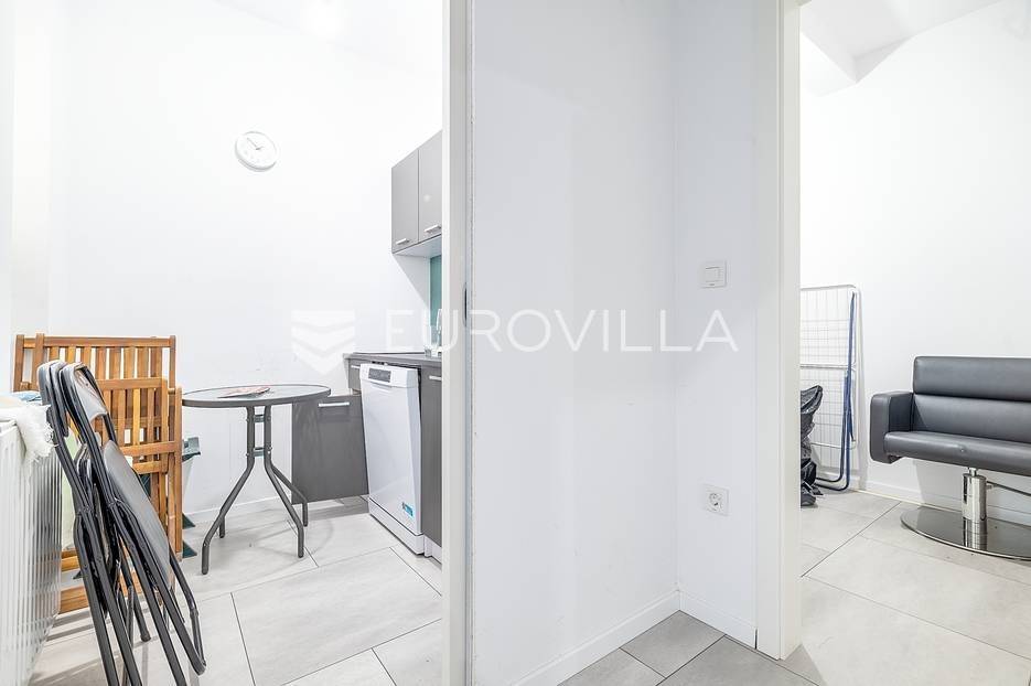 Strogi centar, poslovni prostor (lokal) tlocrtne površine cca 92 m2 i 30-40 m2 galerije. Trenutno je uređen kao frizerski salon. Nalazi se u dvorišnom dijelu, na jednoj od najfrekventnijih lokacija u pješačkoj zoni blizu Trga bana Josipa Jelačića.Sastoji se od velikog prostora otvorenog tlocrta, spremišta (ostave)/vešeraja, manje kuhinje, sanitarnog čvora za goste i jednog sanitarnog čvora za osoblje.Visina prostora je 4 m. U prostoru su kompletno novopostavljene instalacije struje, vode i plina, novi kondenzacijski bojler, uređeni podovi i zidovi. Grijanje je etažno plinsko. Zgrada je bez oštećenja od potresa. Mogućnost parkinga u dvorištu na jedno parkirno mjesto (nije garantirano).Idealno trenutno za frizerski salon, no može prenamjena za restoran ili ugostiteljski objekt. Postoji mogućnost dodatnog uređenja cca 150 m2 terasa (dodatna doplata).Cijena 3.000 € + PDV + režije.Za dodatne informacije stojim Vam na raspolaganju.