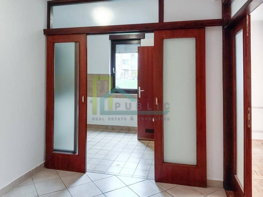 Iznajmljuje se lijep poslovni prostor (uredski) površine 64 m2 u visokom prizemlju stambene zgrade na Rudešu - Jablanska ulica.