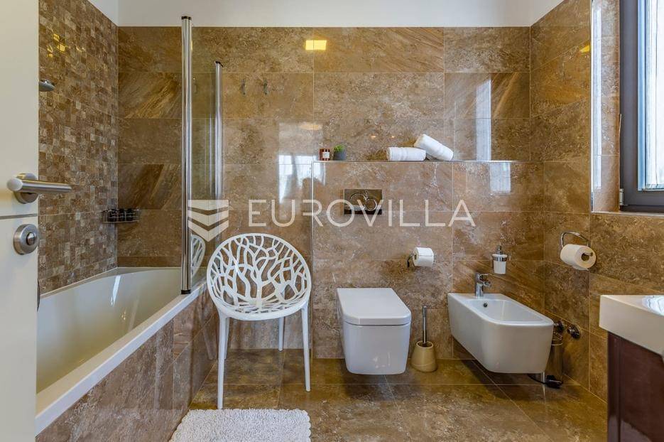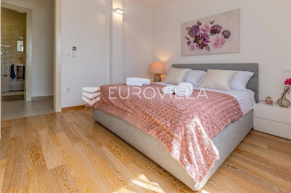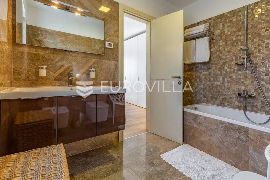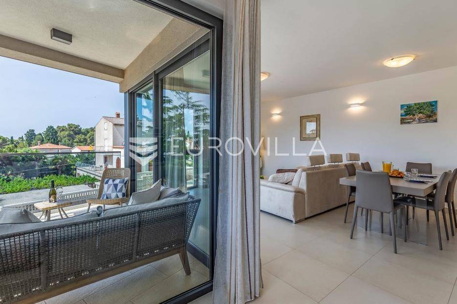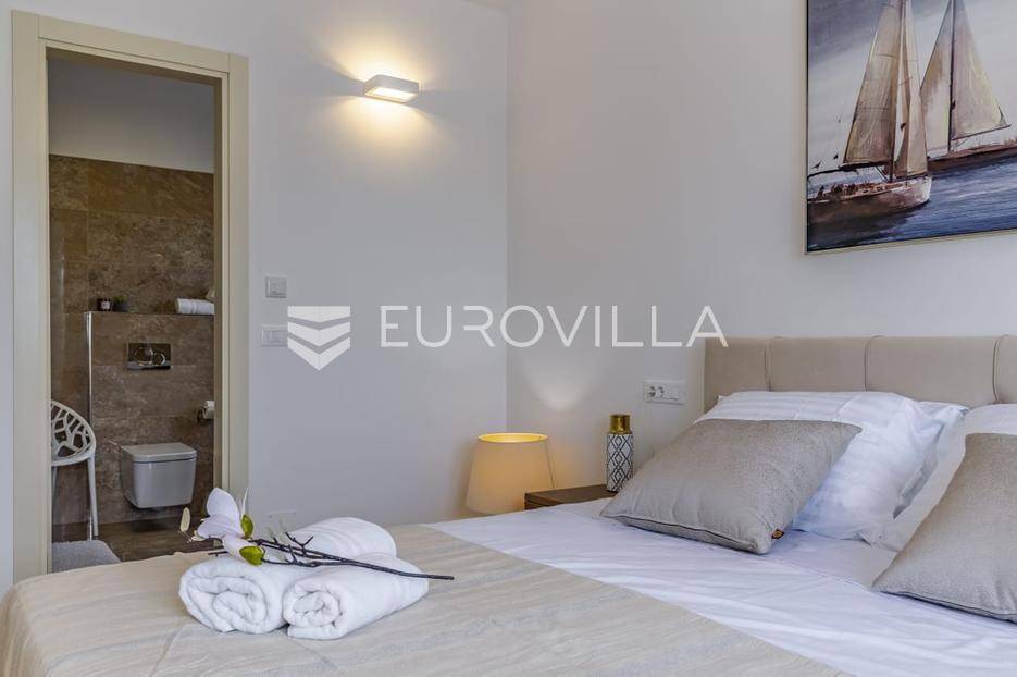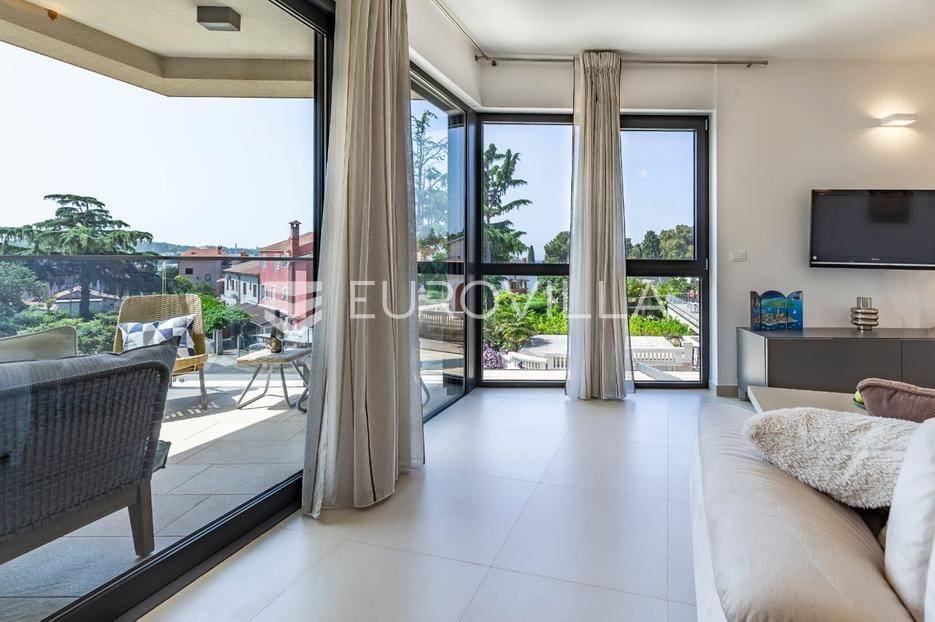 Istra, Rovinj, dugoročni najam dvosobnog stana na 1. katu zgrade s pogledom na more, parkirnim i garažnim mjestom na top lokaciji na samo 2 minute hoda do mora.Iznajmljuje se prostran i potpuno opremljen stan s dvije spavaće sobe svaka s vlastitom kupaonom, u jednoj od najpoželjnijih lokacija u Rovinju. Stan se nalazi na prvom katu održavane zgrade s pogledom na more i obiljem prirodnog svjetla tijekom cijelog dana.Sadržaji i opremaGaraža i vanjski parking s daljinskim otvaranjemBicikli na raspolaganjuKlimatizacija Mitsubishi (grijanje i hlađenje) u cijelom stanuPodno grijanje u kupaoniciRadijatori na struju i bojler za toplu voduElektrične roleteVideo parlafon i sefKućanski aparati (vrhunske marke)Perilica rublja MieleSušilica rublja MieleUsisavač MielePerilica suđa BoschPećnica, ploča za kuhanje, napa, hladnjak i zamrzivač - BoschMikrovalna pećnica, toster, kuhalo za voduDolce Gusto aparat za kavu (kapsule)Pegla i daska za peglanjeKompletno posuđe, tanjuri i pribor za jeloMultimedija i dodatnoLG TV (Netflix, Disney+, Rakuten, YouTube i ostalo)5G bežični internet ruterGanitura na balkonu i tende za zasjenjivanjeVeliki ugradbeni ormar u hodniku + 6-krilni ormari u svakoj spavaćoj sobiPrednosti lokacije2 minute hoda do mora i plažeBlizina svih sadržaja (market, bolnica, škola, park, restorani)Mirna zona s puno zelenilaIdealno za duži boravak ili cjelogodišnji najamDugoročni najam moguć uz ugovor i polog. Stan je slobodan odmah i spreman za useljenje.Za više informacija stojimo na raspolaganju