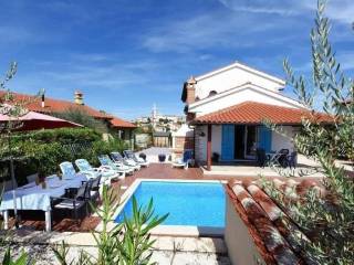 In a quiet location, about 13 km from Poreč and the sea, there is a detached house with a total area of 150 m2. It is located on a landscaped garden that provides privacy and a pleasant space for outdoor living. In the courtyard there is a swimming pool with a paved sundeck, a barbecue and a covered terrace. The house is spread over two floors, ground floor and attic, and consists of a living room with kitchen and dining room, three bedrooms and two bathrooms. The living area opens onto a covered terrace that provides additional space during the warmer months. Heating and cooling are provided by air conditioning, and an additional cozy atmosphere is created by a wood-burning stove in the living room. The property is sold furnished and ready to move in, which makes it suitable for both family life and tourist rental.