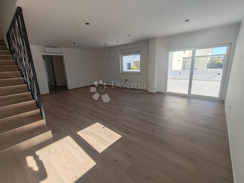 Vodice – Modern Newly Built Family Home with Pool, Garden, Move-in Ready For sale: a newly built, completed and immediately move-in ready family house featuring modern architecture and an excellent layout, located in a quiet part of Vodice. The house is part of a semi-detached building and extends over two floors – ground floor and first floor, with a total usable area of 166 m². GROUND FLOOR: Entrance hall, guest toilet, bedroom with bathroom, storage room, a spacious open-plan living room with kitchen and dining area, opening onto a large covered terrace of 37 m² – perfect for relaxation and entertaining by the pool. FIRST FLOOR: Hallway, laundry/dressing room, and three bedrooms, one of which has its own en-suite bathroom and a partially covered terrace (with place for jaccuzzi). There is also an additional bathroom shared by the remaining two bedrooms. GARDEN & PARKING: A landscaped green garden of 97 m² and parking space for three vehicles. FEATURES & EQUIPMENT: Security entrance door PVC windows with electric shutters and mosquito nets Underfloor heating in all bathrooms and living room Air conditioning in the living room and all bedrooms High-quality ceramic floor tiles Installations for telephone, internet, and satellite TV Location: 900 m from Vodice town centre, 1000 m from the beach Total living area: 166 m² Garden area: 97 m² Parking spaces: 3 This modern home offers the perfect combination of comfort, functionality, and contemporary design, making it ideal for family living or as an investment for tourist rental. For more information and to arrange a viewing, please contact us! Draženka Blazinarić +385 91 796 2322 drazenka.blazinaric@dogma-nekretnine.com ID CODE: DA100066052 Draženka Blazinarić Asistent u posredovanju Mob: 091/796-2322 Tel: 022/646-360, 022/646-361 E-mail: drazenka.blazinaric@dogma-nekretnine.com www.dogma-dalmacija.com