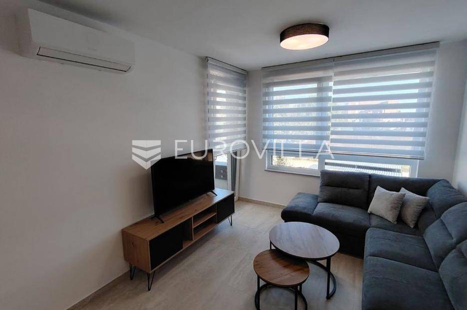 Moderan stan u novogradnji površine 43 m² nalazi se na prvom katu stambene zgrade s liftom i dostupan je za prvo useljenje od 1. studenoga 2025. godine.Stan se sastoji od spavaće sobe s box spring krevetom, dnevnog boravka s kutnom garniturom na razvlačenje, kuhinje opremljene perilicom posuđa, hodnika, kupaonice s walk-in tušem i perilicom rublja te natkrivene terase, te vanjskog parkirnog mjesta. Namještaj se izrađuje po mjeri i stan će do useljenja biti u potpunosti namješten.Stan ima podno grijanje izvedeno putem dizalice topline marke Bosch, a klimatiziran je Bosch klima-uređajem.Lokacija stana omogućuje dobru prometnu povezanost, a u neposrednoj blizini nalazi se autobusno stajalište ZET-a..Za sve dodatne informacije i dogovor oko razgledavanja molimo da se javite putem e-maila ili telefonom.