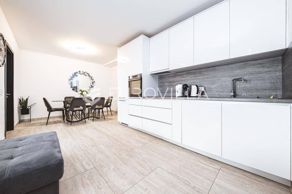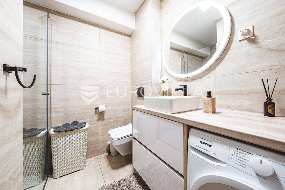 Pripadaju mu i 2 garažna parkirna mjesta te 2 spremišta (5,50 i 4,50 m2) u podrumu zgrade.
