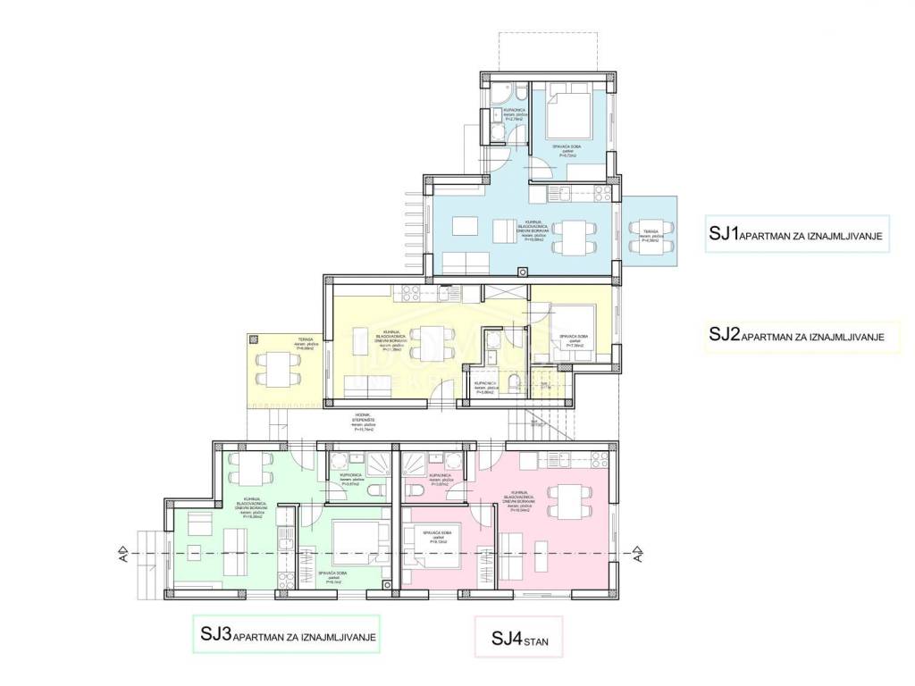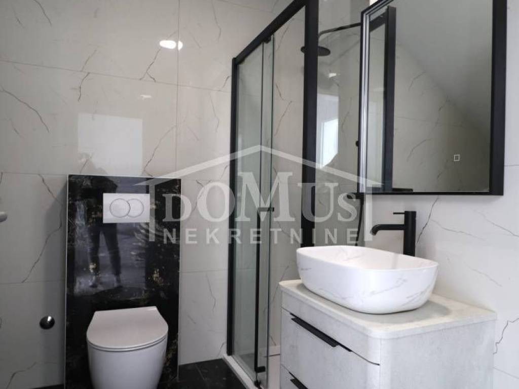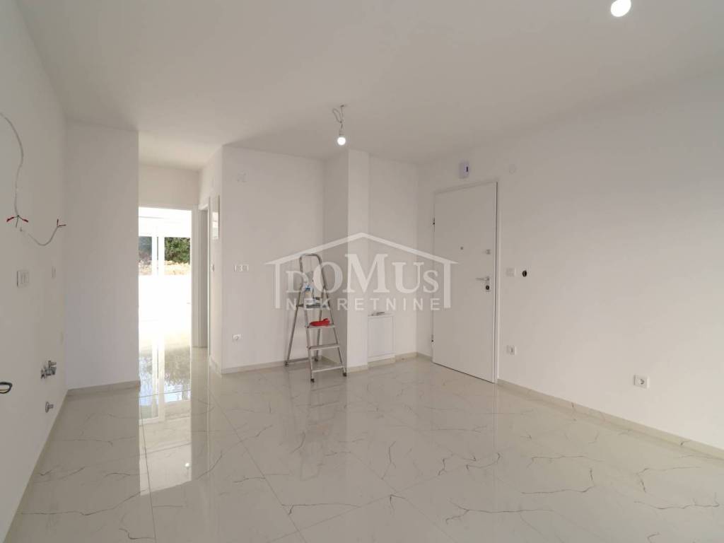 New construction, attractive location, only 200m from the sandy beach, one-bedroom apartment with 41,65 m2 of usable area. The apartment is located on the ground floor of a residential building, and consists of a kitchen with dining area and living room as a whole with access to a covered terrace of 6,68 m2 oriented to the north-west side from which you can see the sea, one bedroom with access to another terrace of 18,79 m2 oriented to the south-west side and a bathroom. The apartment is equipped with high-quality materials, PVC joinery, security doors, air conditioning in the living room and bedroom, installations for water underfloor heating have been installed throughout the apartment but it is not connected. The apartment has one parking space. The distance from the center is 350m.