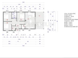 Tlocrtna površina kuće je 127 m2, neto stambene površine 84.4 m2.