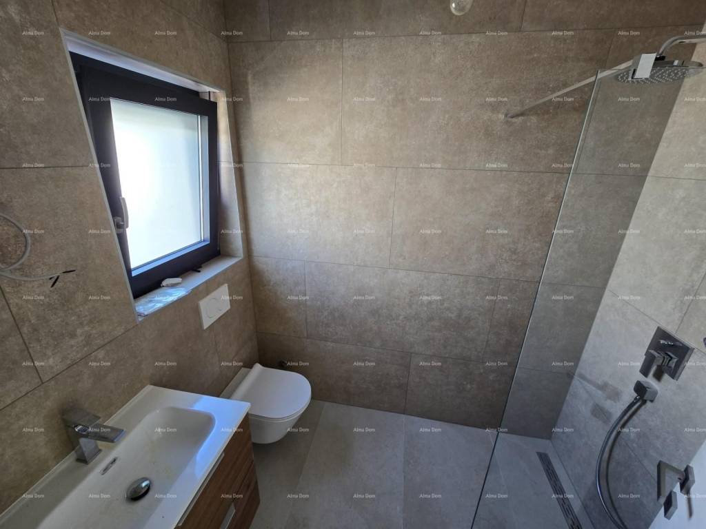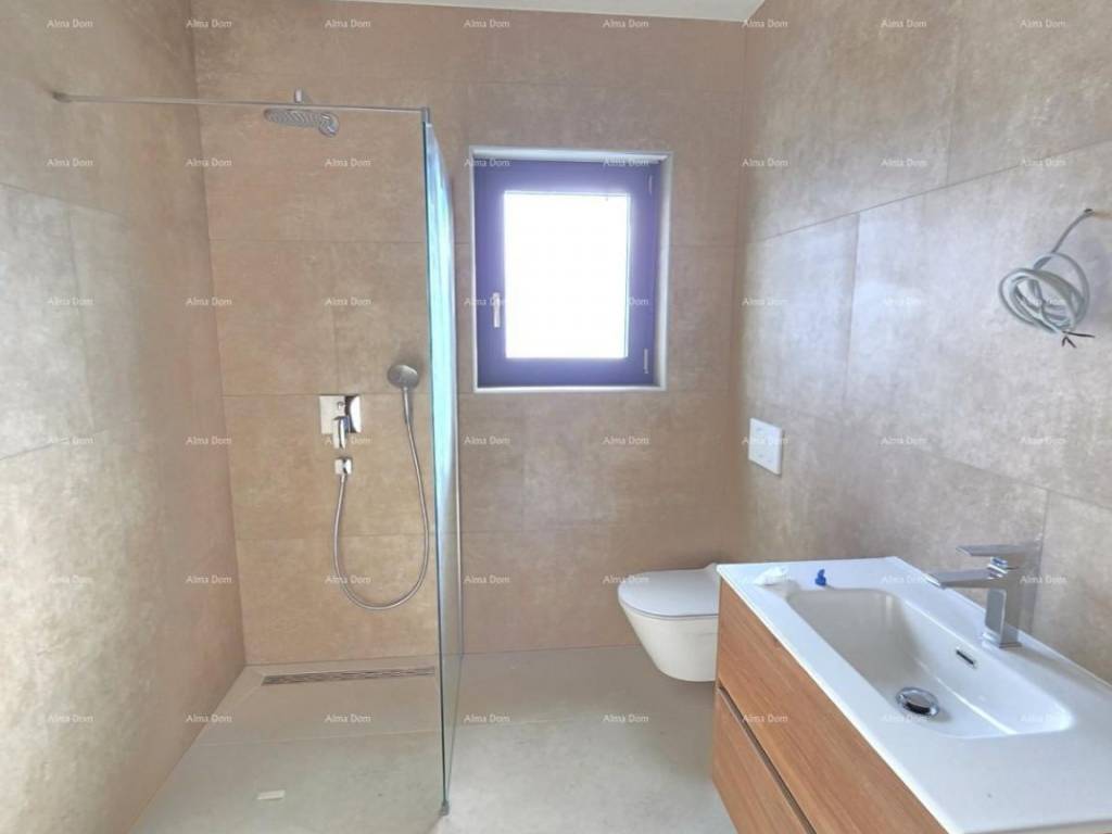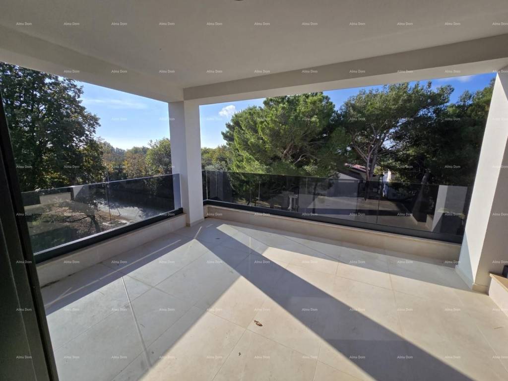 Medulin, quiet location, close to the sea - apartment on the 2nd floor.The building has 3 floors, one apartment on each floor.This comfortable apartment on the 2nd floor is marked "C" with 3 bedrooms, 2 bathrooms and a 16 m2 balcony with a beautiful view of the green pine trees and the sea:HALLWAY - 2.76m2LIVING ROOM AND KITCHEN - 29.76 m2BATHROOM - 3.74 M2HALLWAY - 4.77 m2BEDROOM - 11.55 m2BEDROOM - 11.13 m2BATHROOM - 4.83 M2BEDROOM - 8.25 m2BALCONY - 13.62m2*0.50+2.33m2*0.25=7.39 m2The total net area of the apartment "C" is 84.18 m2.With the apartment you can choose 2 outdoor parking spaces or 1 parking space and a garage depending on the availability of the garage, because there is only 1 garage in the building, as well as a storage room for an additional fee. The price is based only on the living area.The building has been built, the apartment is ready to move in. It is equipped with inverter air conditioners in each room, the floor of which is covere by laminate, and in the bathroom, living room and kitchen are quality ceramic tiles with underfloor heating.The windows are three-layer anthracite in color on the outside and inside, with lift-and-slide windows in the living room with access to the terrace, also only on these windows are electric roulettes installed.Mosquito nets are on all windows.For more information, call us or arrange a viewing appointment:Azra+385 91 611 5706+385 98 420 885azra@almadominvest.com