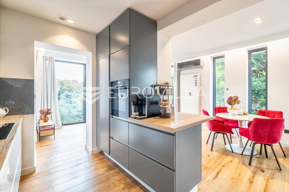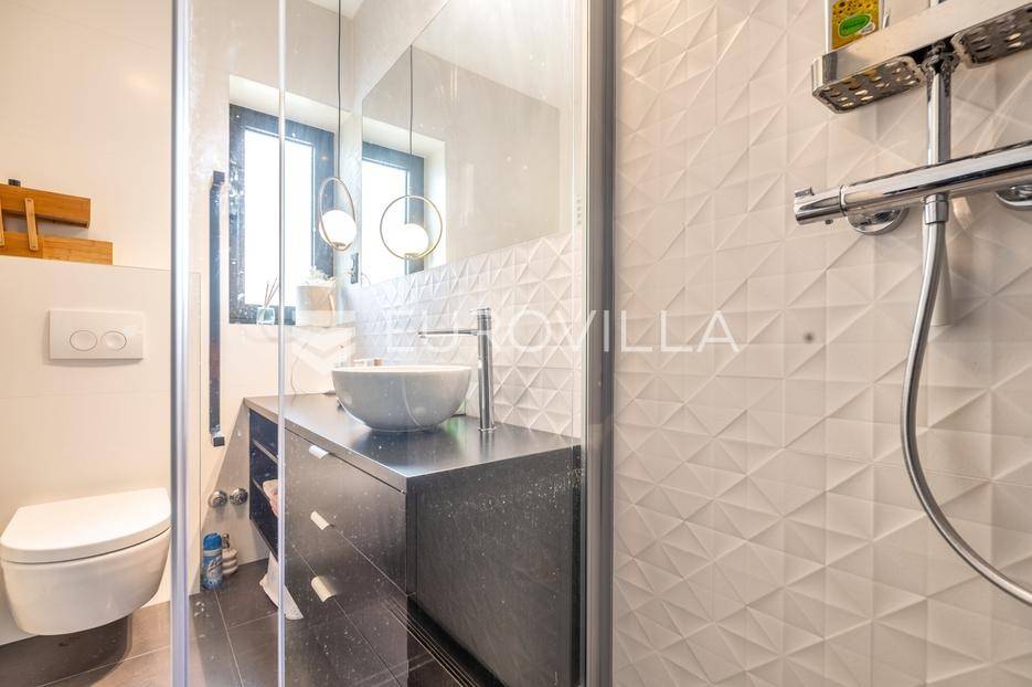 - Dvije moderno uređene kupaoniceOmogućen je parking za četiri vozila - dva unutar dvorišta i dva dodatna parkirna mjesta uz ulaznu ogradu.Kompletna renovacija kuće 2019. godine.Ekskluzivna i rezidencijalna zona u neposrednoj blizini šume, savršen spoj privatnosti i dostupnosti. U blizini se nalazi javni prijevoz, škole i vrtići, trgovine, ugostiteljski objekti i svi bitni sadržaji.Za sve dodatne informacije ili razgledavanje, stojimo Vam na raspolaganju.