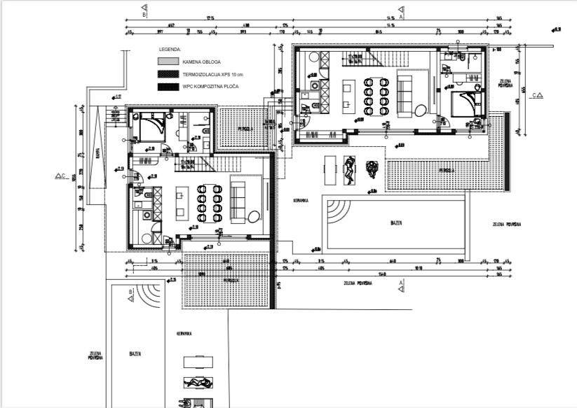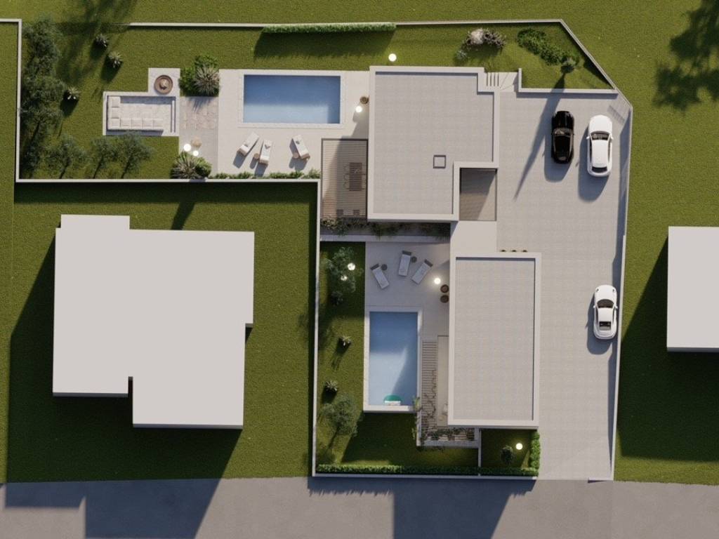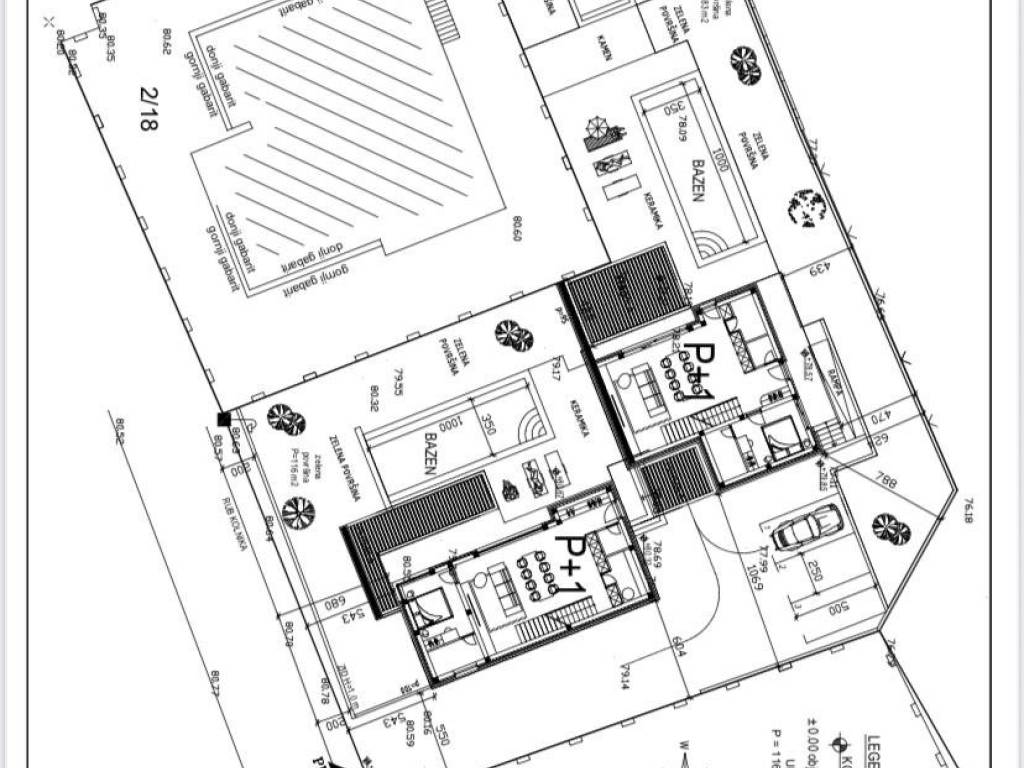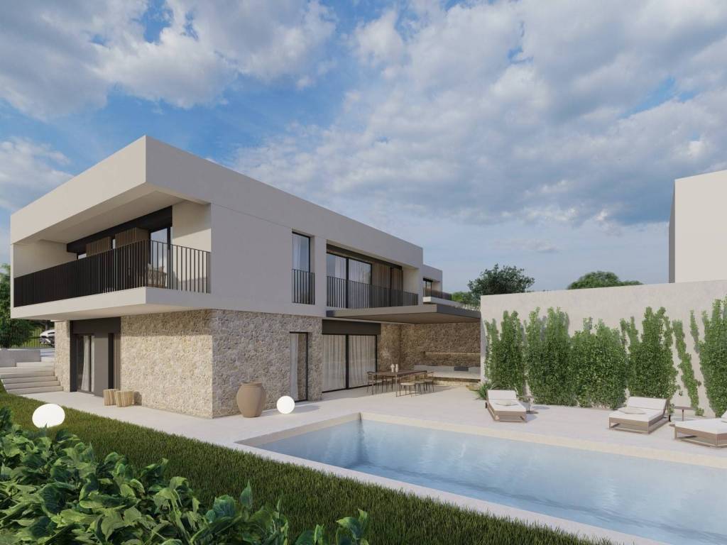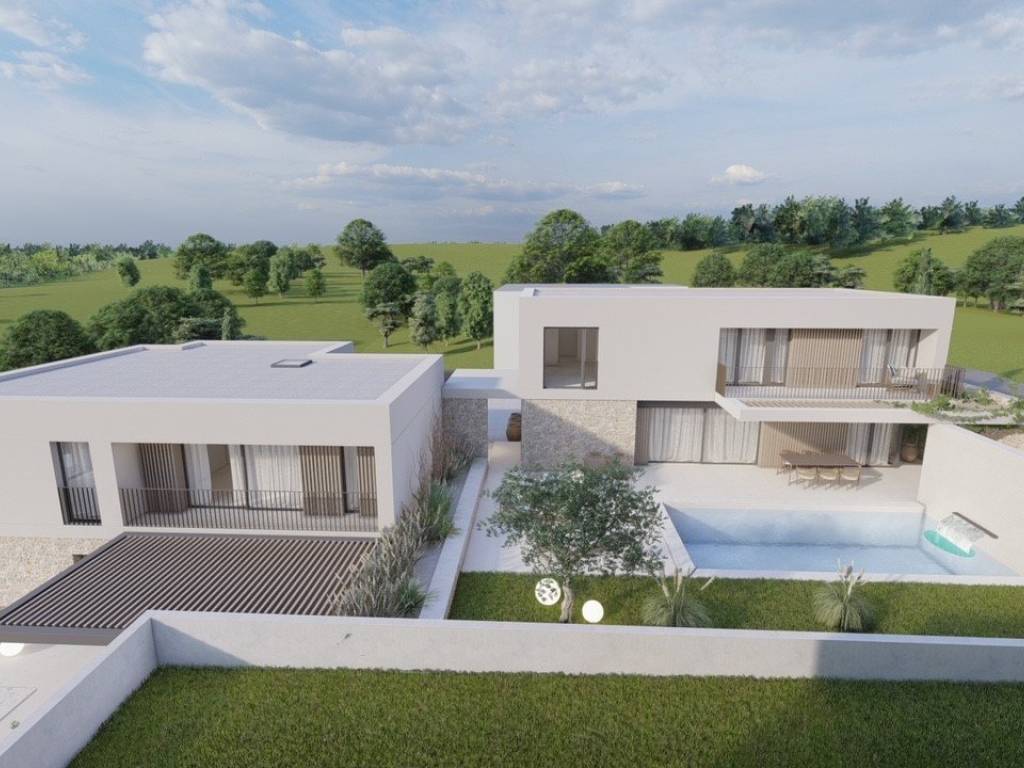 Umag okolica građevinski teren 1280 m2, projekt za dvije kuće po 200 m2 sa bazenom, pravomoćna građevinska dozvola.