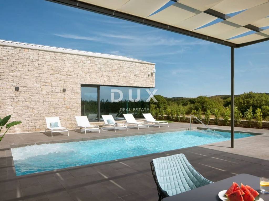 ISTRIA, BALE - Exclusive! Spectacular designer villa One of the most beautiful Istrian gems is the town of Bale, located on the western coast of Istria. This historic stone town is built on a hill surrounded by olive groves and vineyards, and is 5 kilometers from the sea and the untouched sea coast. The 45th parallel passes through the municipality of Bale, or rather its southernmost part, which means it is in the most ideal location - halfway between the Equator and the North Pole. The average annual temperature in Bale is 14 degrees Celsius, and on average they record 2,400 hours of sunshine per year. In this picturesque Istrian medieval town, a spectacular designer villa is for sale. The property represents a harmony of space, needs, function, construction and beauty. It is located in a quiet neighborhood, surrounded by idyllic Istrian countryside, family homes and holiday homes, offering the perfect balance of rural surroundings and proximity to the sea and urban amenities, far enough away from the hustle and bustle but still close to all the amenities needed for a year-round stay. In addition to the location that provides complete comfort, the property is also characterized by the quality of construction and equipment, which guarantees long-term satisfaction and quality of living. The villa, a contemporary breakthrough in timeless architecture with an emphasis on functionality and aesthetics, blends into the settlement and landscape in terms of form and color. It is spread over two floors with a functional floor plan, and the living area offers a harmonious living environment bathed in natural light that exudes sophistication and comfort with well-known design pieces from brands such as Poliform, Moooi, Artemide, Vitra, etc. The ground floor of the villa consists of a wellness area that contains an indoor heated pool, a Finnish sauna and a bathroom, an open-concept space that unites the kitchen, dining room and living room with access to a pergola-covered terrace that contains a summer kitchen, three bedrooms with private bathrooms, a guest toilet, a laundry room and technical rooms, while the first floor consists of a gallery and a bedroom with a private bathroom. The fenced garden is abundant with greenery, and the perfect harmony of the ambient and horticulturally decorated garden is rounded off by a 40 m² heated pool with a sunbathing area and a covered lounge, a relaxation area with a shallow pool. The location, comfort and structure make this superb property an ideal opportunity for a peaceful family life as well as an investment for the purpose of tourist rental. Dear clients, the agency commission is charged in accordance with the General Terms and Conditions: www.dux-nekretnine.hr/opci-uvjeti-poslovanja ID CODE: 42848 Iva Zajc Agent s licencom Mob: +385 92 235 9472 Tel: +385 99 640 8438 E-mail: iva@dux-istra.com www.dux-istra.com