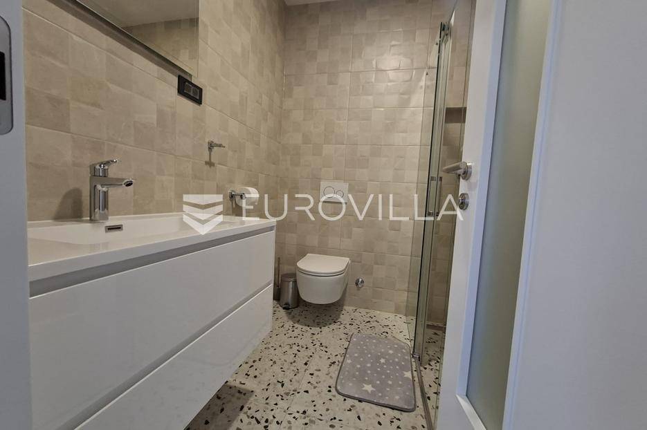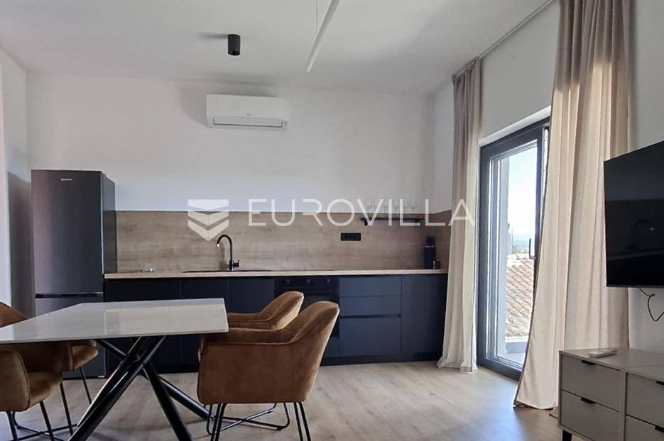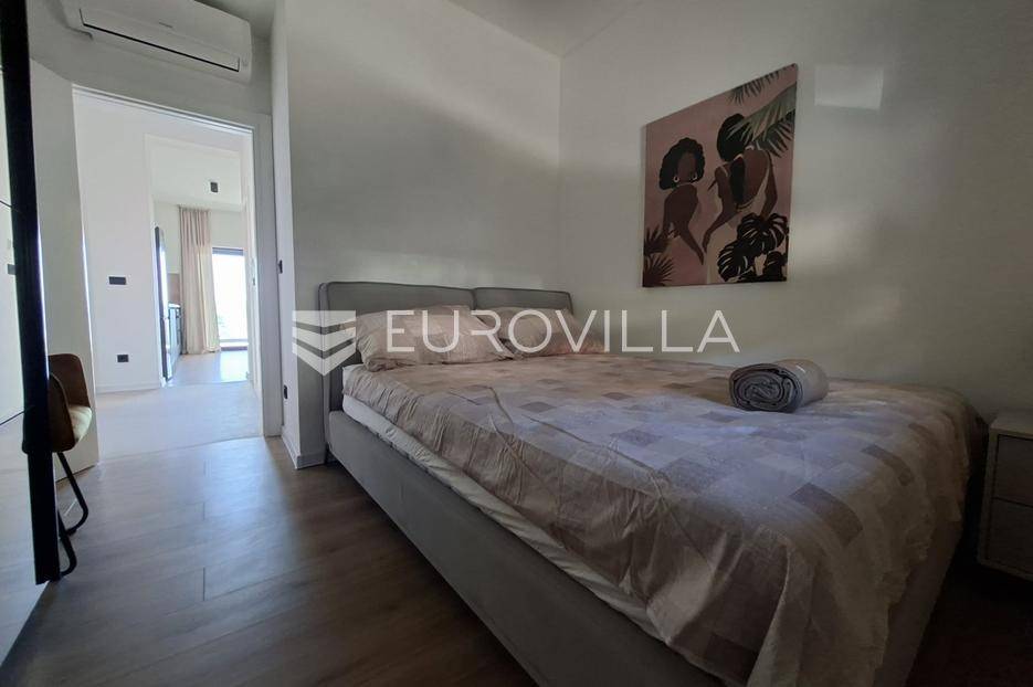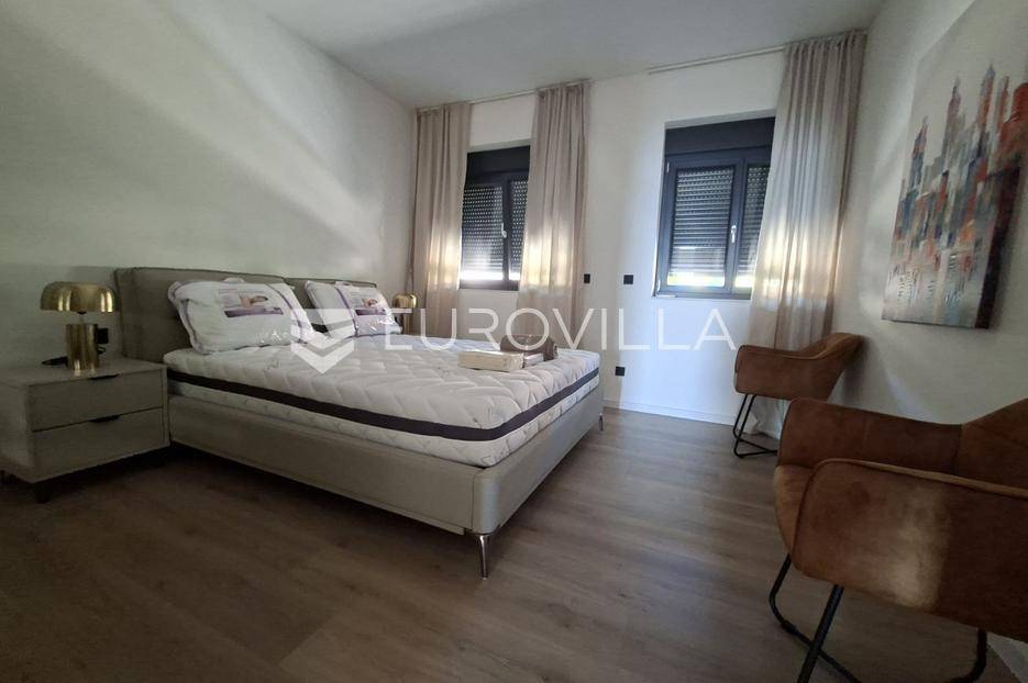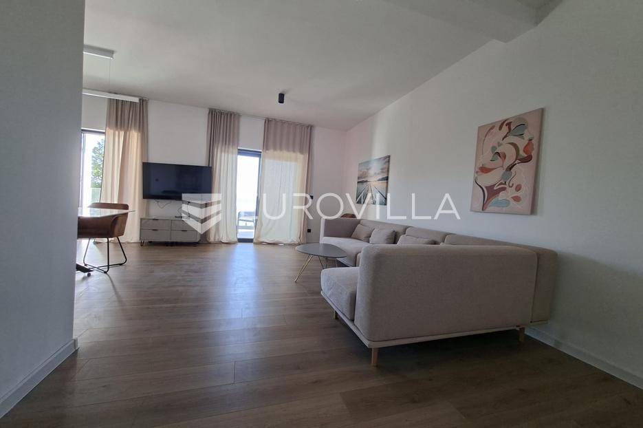 Iznajmljuje se predivan stan u Lovranu, smješten u modernoj novogradnji na mirnoj i lijepoj lokaciji, idealnoj za ugodan život ili odmor. Stan površine 90 m² sastoji se od dvije prostrane spavaće sobe, kuhinje povezane s dnevnim boravkom i blagovaonicom, te elegantne kupaonice.Posebnu čar daje velika terasa s prekrasnim pogledom na more, savršena za opuštanje i uživanje u zalascima sunca.Stan je moderno i ukusno namješten, a budućim najmoprimcima na raspolaganju je zajednički bazen koji se dijeli s još dva stana. Osigurano je i parkirno mjesto.Ova nekretnina spaja udobnost, suvremeni dizajn i mirno okruženje — savršen izbor za one koji traže prostran, moderan i opuštajući dom na Kvarneru.