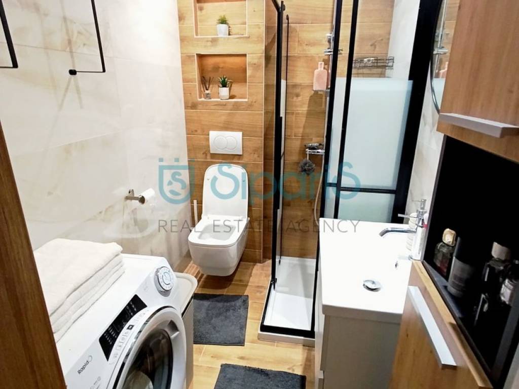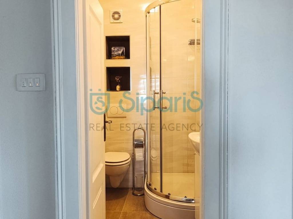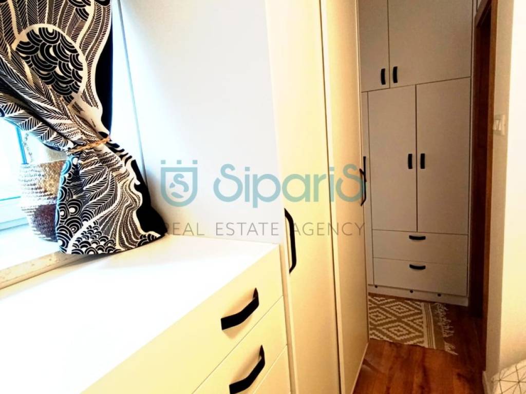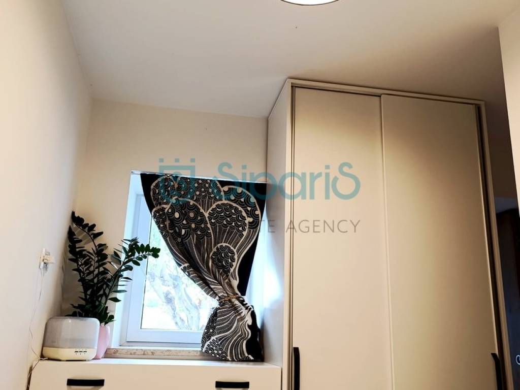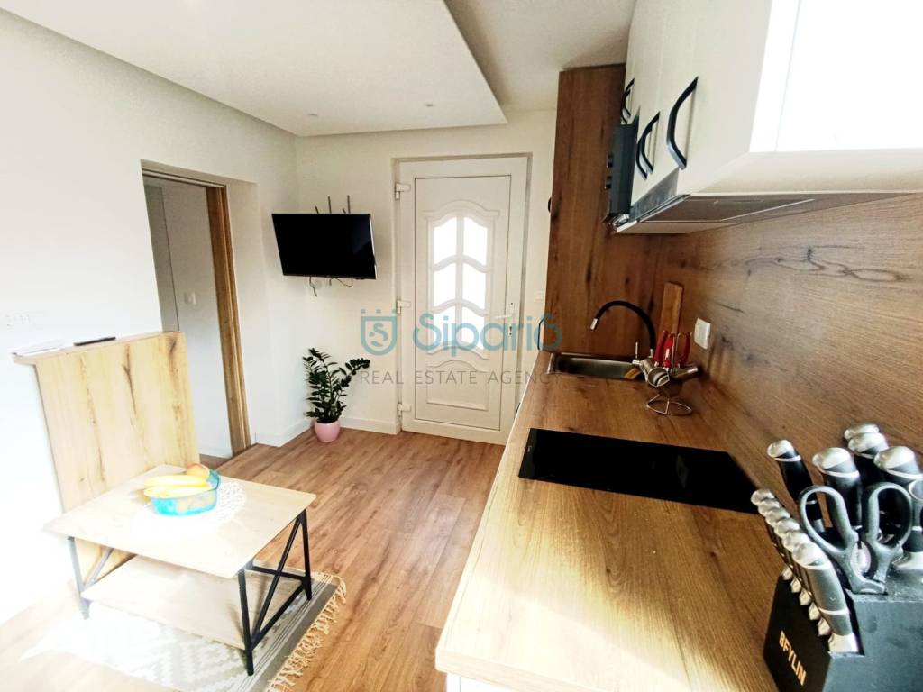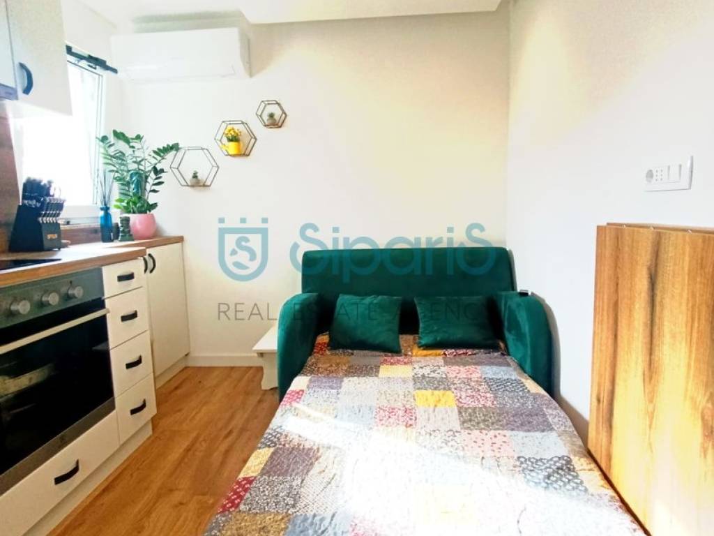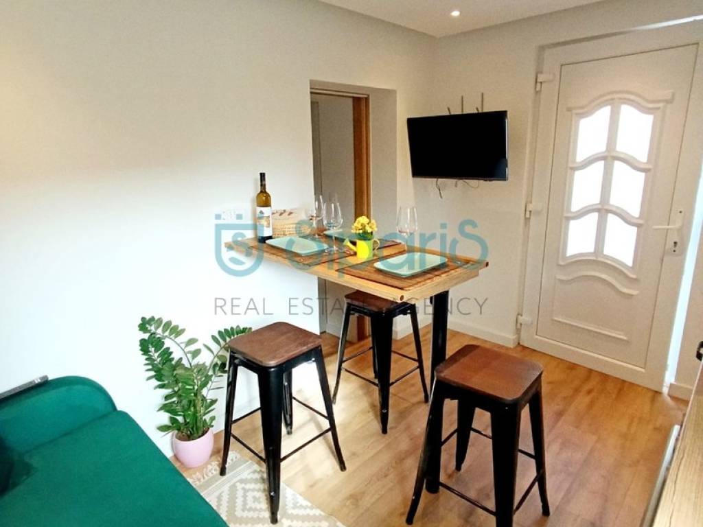 Drugi stan se nalazi u prizemlju,To je mali stan veličine 27m2 i dodatne terase od 10m2. Svaki kutak ovog stana je iskorišten, namještaj je visokokvalitetni te izrađen po mjeri. Sastoji se od kuhinje sa dnevnim prostorom, kupaonice sa wc-om te spavaće sobe.