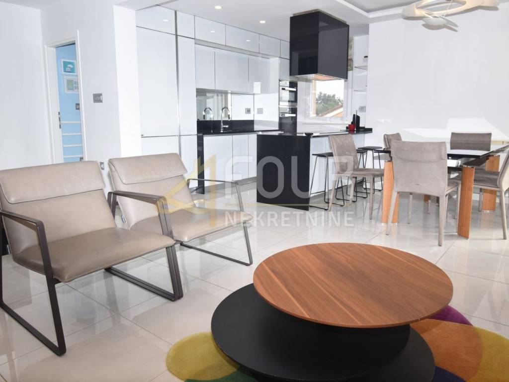 For sale is a modern and luxuriously furnished apartment in Donja Drenova, located in a smaller, newer residential building on an exceptionally attractive location with an open view of the entire Kvarner Bay and the islands. The apartment is situated on the second floor and has a living area of 78.55 m². It consists of an entrance hall, two bedrooms, a bathroom, and a spacious living room connected to the kitchen and dining area in an open-concept layout of 33 m². From the living area, there is access to a partially covered terrace of 10 m², perfect for enjoying the view and tranquility of the surroundings.