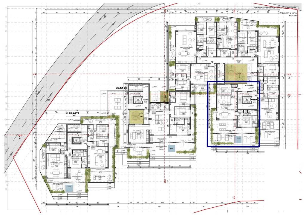 Split - Podstrana, TERASE - EKSKLUZIVAN PROJEKT, NOVOGRADNJA, luksuzna stambeno-poslovna zgrada s ukupno 57 stambenih jedinica na atraktivnoj lokaciji, bit će građena po najvećim standardima, prati moderan i suvremen način života. Useljenje prva polovica 2028. godine.STAN S46 PENTHOUSE - dvosoban stan smješten na petom katu zgrade zatvorene površine 80,22 m2, terase površine 81,4 m2. U cijenu stana su uključena dva garažna parkirna mjesta (30 m2) i spremište (4 m2). Ukupna prodajna površina stana je 129,44 m2.Sastoji se od ulaznog prostora, dnevnog boravka s blagovaonicom i kuhinjom otvorenog tlocrta s izlazom na terasu, dvije spavaće sobe, dvije kupaonice i ostave.Vrhunska oprema: dizalica topline, podno grijanje, klimatizirana svaka prostorija, ALU stolarija, protuprovalna ulazna vrata, parket I klase, vrhunska keramika i sanitarna oprema…Nalazi se na atraktivnoj mikrolokaciji odmah iznad hotela Le Méridien Lav te u neposrednoj blizini svih potrebnih sadržaja.Za sve ostale informacije stojimo na raspolaganju.