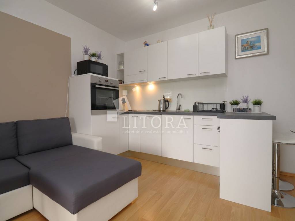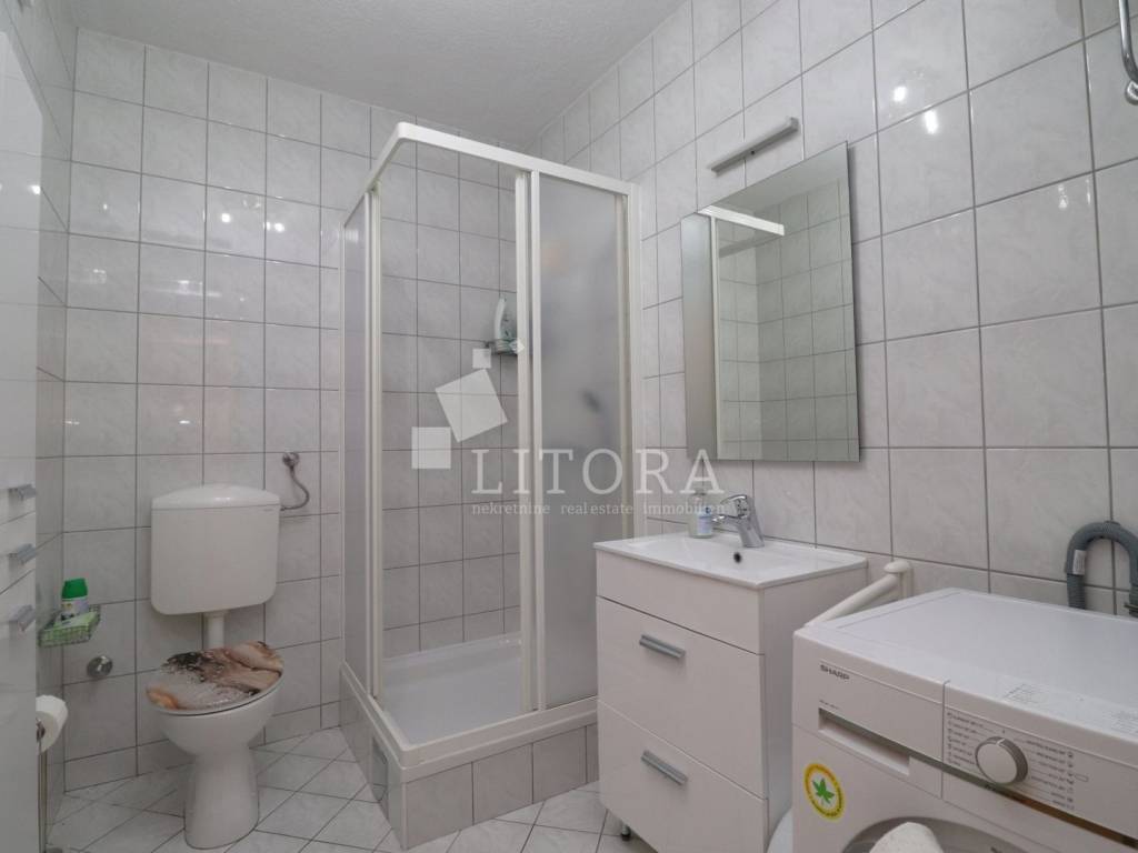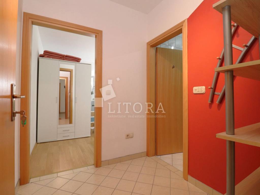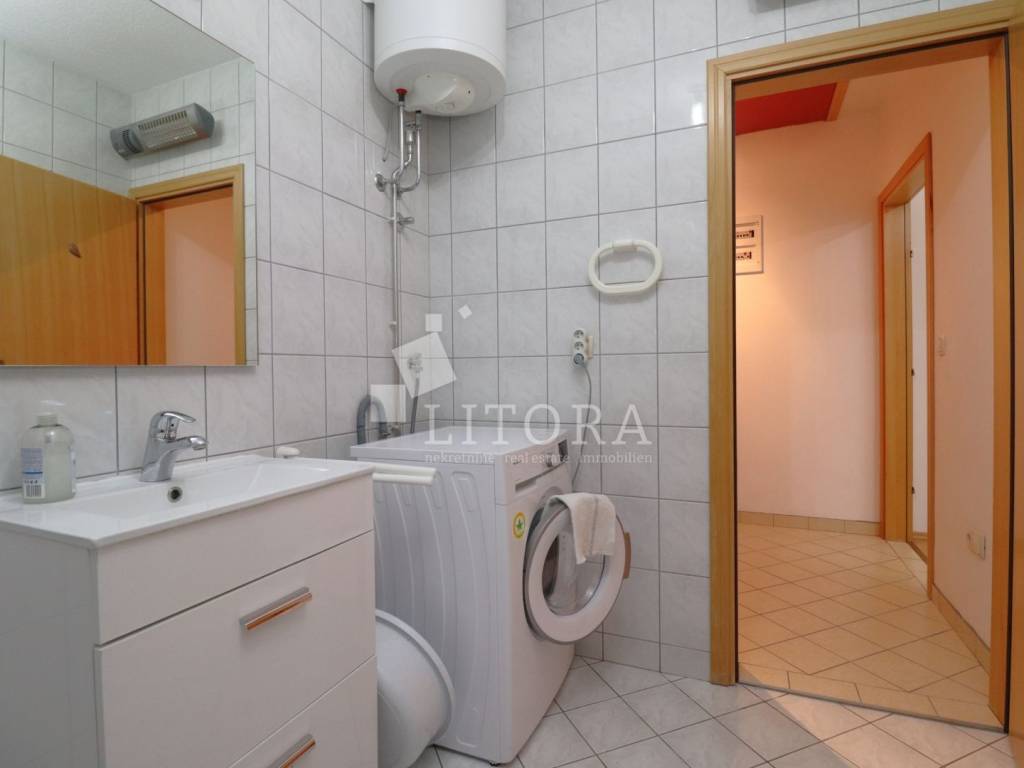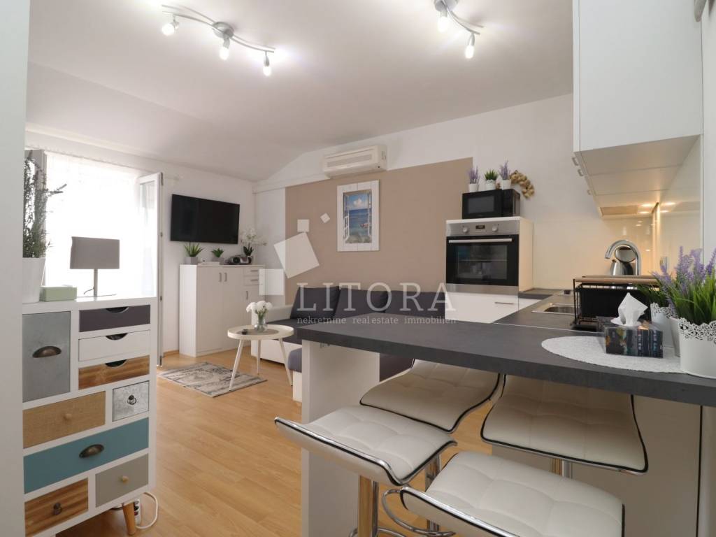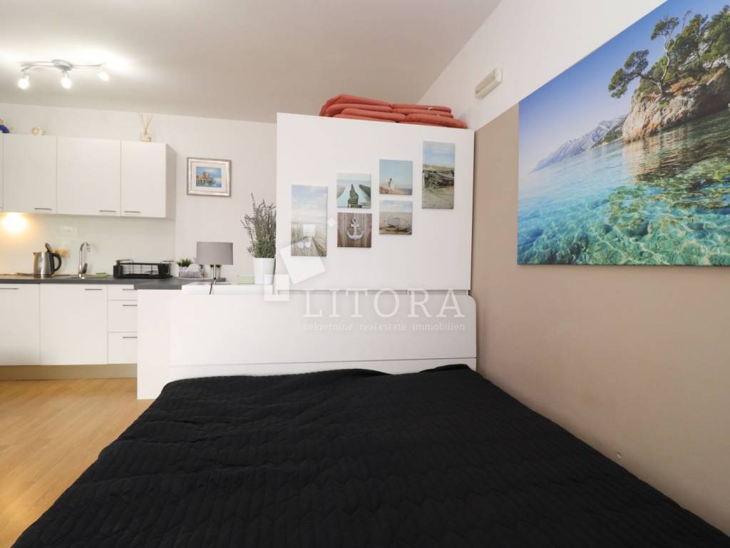 Srima – Fully furnished studio apartment with terrace and sea view. The apartment has a usable area of 39.62 m² and is located in a quiet part of Srima, in a multi-apartment building. It is situated in the high attic and consists of a hallway, bathroom, bedroom / kitchen with living room in one, and a large terrace wtih sea view. The apartment includes storrage and one parking space in the building’s courtyard. It is oriented to the south. Equipped with air conditioning, it is sold fully furnished, with all furniture included in the price. Distance from the beach is 200 m and from the town center 300 m.