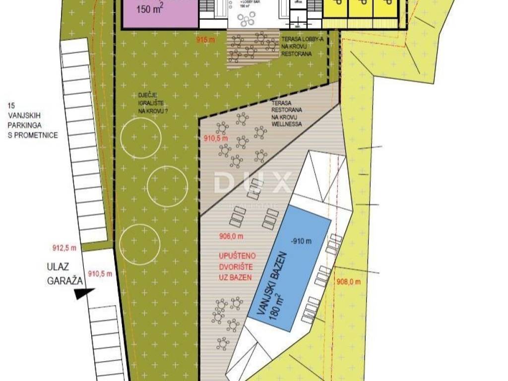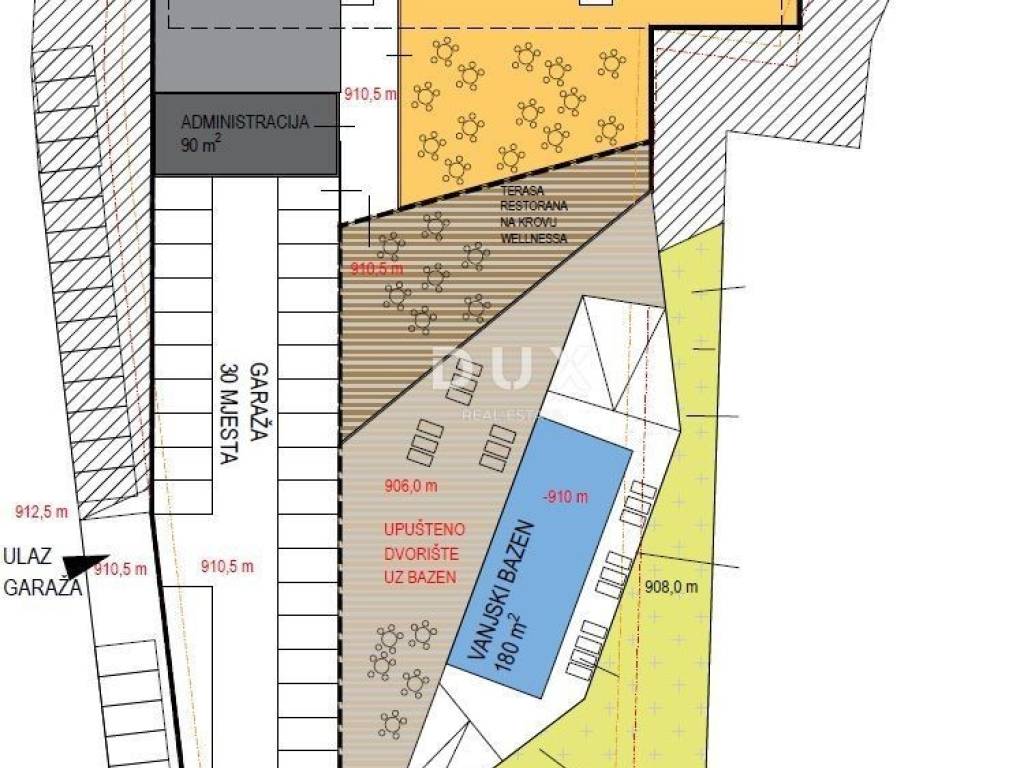 INVESTICIJSKA PRILIKA KOJA SE NE PROPUŠTA! GORSKI KOTAR, STARI LAZ - ZEMLJIŠTE S IDEJNIM PROJEKTOM ZA PRVI BOUTIQUE FAMILY RESORT U REGIJI! Tražite vrhunsku investiciju u rastućem turističkom sektoru? Predstavljamo jedinstvenu priliku u srcu Gorskog kotara, na izuzetno povoljnoj lokaciji. PROJEKT S POTPISOM JEDINSTVENOSTI: Ovaj ambiciozni projekt predviđa izgradnju luksuznog Boutique Family Resorta s ukupno 93 smještajne jedinice, koncipiranog kroz međusobno povezane "iskustvene zone": HOTEL (40 soba): Upscale 4* obiteljski hotel s 40 soba (30 m2 po sobi). Centralna zgrada s wellnessom, unutarnjim i vanjskim bazenima (po 180 m2), restoranom, igraonicama i dvoranom. KUĆICE NA DRVETU (23 jedinice): Autentično iskustvo prirode! Dodatni hotelski kapaciteti (30 m2) idealni za obitelji (2+2). CHALETI (30 jedinica): Drvene planinske kuće različitih kapaciteta (od 45 m2 do 90 m2) za vlasništvo ili najam. Uključuje i 4 već izgrađene kuće! DRUŠTVENI I JAVNI SADRŽAJI ZA SAVRŠEN ODMOR: Resort će nuditi lobby bar, hotelski restoran, kompletan wellness, spa, igraonice, multifunkcionalnu dvoranu, te parking vanjski i garaža (ukupno 108 mjesta). INVESTICIJSKI POTENCIJAL I REGULACIJA: NAMJENA ZEMLJIŠTA T2 (Ugostiteljsko-turistička): Dozvoljena gradnja hotela, aparthotela, turističkog kampa i pratećih sadržaja (trgovine, usluge, sport, zabava). MAKSIMALNI KAPACITET: Mogućnost razvoja projekta s čak do 550 ležajeva ugostiteljsko-turističke namjene. VRHUNSKA LOKACIJA – IZVANREDNA POVEZANOST: Gorski kotar, Stari Laz – smješteno na strateškoj poziciji između kontinentalne i primorske Hrvatske, blizu granice sa Slovenijom. IZLETNIČKA I VIKEND DESTINACIJA: Manje od 2 sata vožnje do velikih urbanih središta i glavnih gradova: ZAGREB, RIJEKA i LJUBLJANA! Ovo je vaša prilika da postanete pionir u razvoju butik turizma Gorskog kotara. Prodaje se zemljište s gotovim idejnim projektom spremnim za daljnju razradu. Za sve dodatne informacije, uvid u projektnu dokumentaciju i dogovor sastanka, kontaktirajte nas već danas! ID KOD AGENCIJE: 42666 Tony Jerković Direktor Mob: +385 91 480 8808 Tel: +385 51 518 174 E-mail: tony@dux-nekretnine.hr www.dux-nekretnine.hr