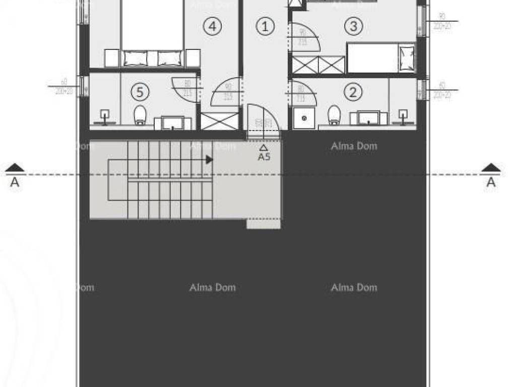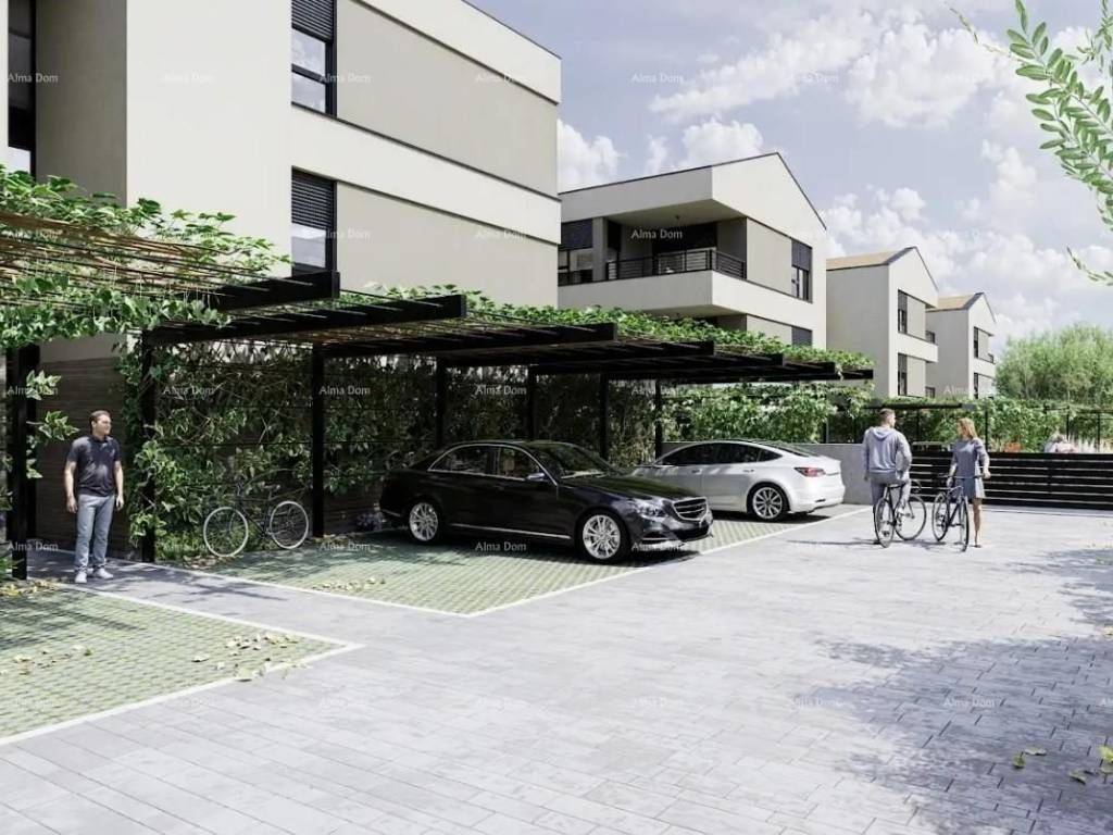 New on the market! In the beautiful town of Fažana, we offer modern apartments in a new development with a pool, located within an attractive project consisting of four buildings with a total of 23 apartments of various sizes and layouts. The project is situated in an excellent location – a quiet environment close to the sea and all essential amenities.Apartment A5, with an area of 72.24 m², is located on the 2nd floor of a 3-story building. The apartment consists of an entrance hallway, a wardrobe, a living room with a kitchen and dining area, 2 bedrooms, 2 bathrooms, and a terrace.Equipment and standards: - Underfloor heating in bathrooms. - High-quality ceramic tiles. - PVC French-style windows with shutters and insect screens. - Bathroom fixtures from renowned manufacturers. - Air conditioning. - Anti-burglary entrance door. - Option to choose the final flooring – ceramic tiles, parquet, or laminate in the bedrooms. 1 parking space included in the price. Preparation for electric car charging stations at each parking space. Construction is planned to begin in early 2026, with completion expected by 2028. This property is ideal for year-round living, vacationing, or as an investment for tourist rentals. For more information, please contact: Azra: +385 91 611 5706 +385 98 420 885 azra@almadominvest.com