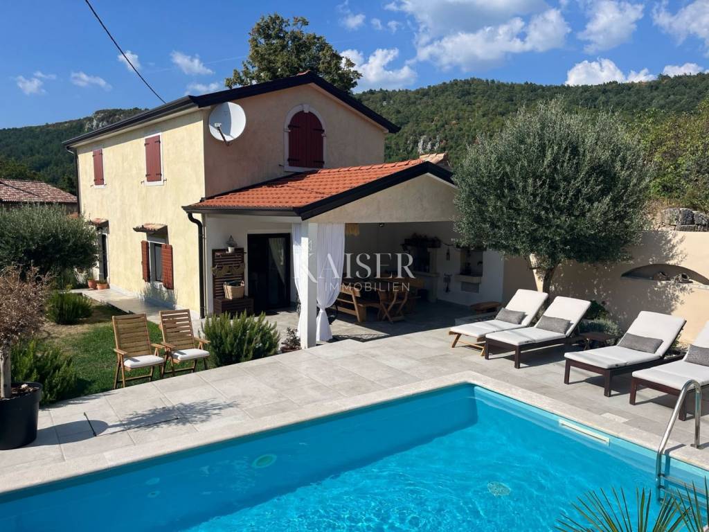 Kaiser Immobilien presents a beautiful detached stone house with a swimming pool in the town of Brest in the municipality of Lupoglav. This stone house was completely renovated in 2021, and functionally operates as a two-story apartment. Located in a peaceful and quiet location, it is ideal for nature lovers and complete relaxation, 30km from the sea. The house has a 4-star categorization. The house consists of a ground floor and first floor. The ground floor has a spacious living room with a fireplace and an additional space (can be used as a room), while the first floor has two bedrooms and a bathroom. The house is air-conditioned and has central heating pipes. The house is fully furnished and superbly furnished with all furniture. The property's courtyard is completely furnished, and consists of a terrace with a total area of 37.5 m², a 4×6 m swimming pool, an outdoor barbecue, parking and a garden. The property is categorized with 4 stars, and has high rental potential during the tourist season. An excellent property for both living and investment! For all questions, feel free to contact the agent: Davor Piškulić davor@kaiser-immobilien.hr +00 385 95 583 8240 WhatsApp, Viber