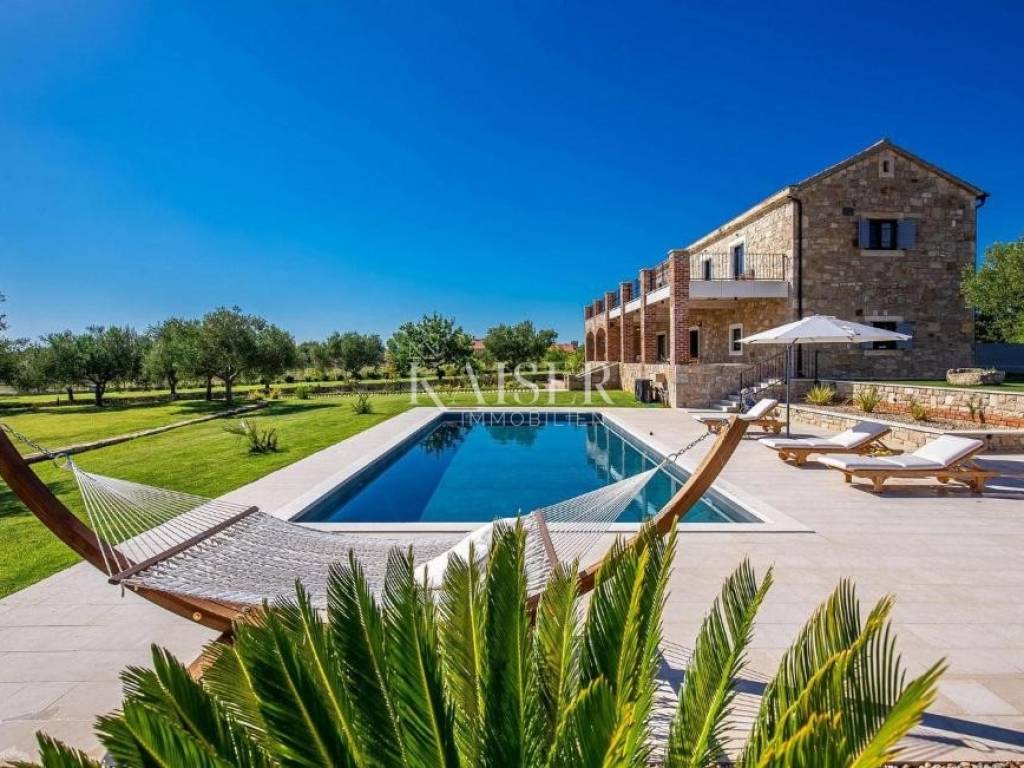 Located in the untouched nature of the Zadar hinterland, this impressive stone villa exudes the harmony of tradition and modern life. On a large area of over 7,700 m², enclosed by a stone wall, it offers complete peace and discretion, surrounded by rich Mediterranean vegetation that further emphasizes the privacy and comfort of this property. With a total gross area of 460 m² and a floor area of 257 m², the villa is perfectly adapted for a life full of content. The outdoor area features a heated swimming pool and a spacious sundeck, ideal for relaxation and entertainment, while a tennis court with a natural clay surface, a children's playground and a barbecue area ensure an active outdoor life. A sufficient number of parking spaces are also available. The interior of the villa has been carefully designed to provide maximum comfort. On the ground floor there is a modern kitchen, a spacious dining room and a living room with a fireplace, which together create a warm and functional space for everyday life, with an additional guest toilet. A special value is the separate connected building, which houses a luxurious bedroom with a bathroom, ideal for guests or a private corner. Upstairs there are four bright bedrooms with access to a shared terrace and three fully equipped bathrooms. For additional entertainment and relaxation, a sauna, billiards and table tennis are available. The villa is equipped with modern heating and cooling systems, which ensures pleasant conditions throughout the year. Carefully selected furniture and high-quality equipment emphasize the harmony between aesthetics and functionality, while the combination of stone and natural materials gives a feeling of warmth and durability. Comfort and privacy, natural beauty and silence, luxury and functionality meet here - creating a space that is not just for staying, but for a special feeling of everyday life at the highest level. The location of this villa opens the door to one of the most picturesque and richest areas in Croatia. Within easy reach are as many as three national parks - Paklenica, Kornati and Krka, as well as the nature parks of Lake Vrana and Velebit, whose impressive presence provides a unique backdrop to the landscape and plenty of opportunities for outdoor activities - from hiking and cycling to exploring the vastness of the Kornati archipelago. Culturally, the region is rich in attractions – from the historic core of Zadar, Roman forums and medieval churches, to untouched villages in the hinterland that preserve the spirit of Dalmatia as it once was. Nearby are also gastronomic destinations known for their olive oils, wine and authentic cuisine based on local ingredients and the Mediterranean way of life. The location of the villa further enhances its value – it is only 2 km from the center of Murvica, and 10 km from the center of historic Zadar. Nearby are shops, a department store, shopping centers, schools and all other important facilities. Zadar – Zemunik International Airport is 15 km away, while Split Airport is 150 km away. The villa is only a few kilometers from the motorway connection and is easily accessible: Zagreb (285 km), Ljubljana (275 km), Vienna (600 km), Munich (600 km) and Budapest (700 km). The agency commission for the buyer is 3% + VAT. The commission covers all services related to the purchase and is paid only in the case of purchasing a property, upon conclusion of the first legal act. For more information and a viewing of the property, please contact: Ivana Skoblar Tel: +385 98 973 11 54 E-mail: ivana.skoblar@kaiser-immobilien.hr Property code: 136-17