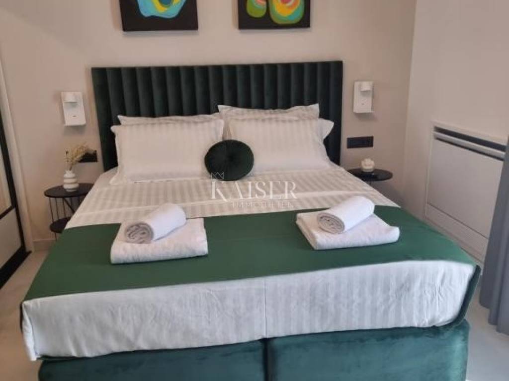 There are places that do not demand attention - they are naturally theirs. Spaces with an unobtrusive sense of goodness. Kaiser Immobilien presents this beautiful villa in Privlaka near Zadar, which is not just a display of architecture, square footage and luxury. It is a sense of place, space and time. The feeling that you have arrived where you belong. Here, the mornings and nights are fragrant and quiet. From every room of this beautiful villa, the view stretches across vineyards, olive groves and fields to the sea, which far in the horizon closes this picture of perfect freedom. Situated on a plot of 913 m2, surrounded by nothing but nature, this modern 350 m2 villa blends in with the surroundings without imposing. It is self-sustaining and completely energy independent, thanks to its own solar system. The entrance to the property is organized via an automatic door system with remote opening and closing, which leads to the entrance hall with its own porch. The main entrance is accessed by a staircase, and security and access control are ensured by an intercom and video surveillance. Upon entering the property, there is an open view of the landscaped garden, rich in Mediterranean plants and a spacious lawn, which creates a sense of privacy and comfort. In the center of the garden is a heated swimming pool with an integrated whirlpool massage area, an outdoor shower and a sunbathing area — an ideal space for enjoying warm days. A special addition to this outdoor space is the pool house, which contains a fully equipped summer kitchen, creating the perfect environment for socializing and living outdoors throughout most of the year. The house extends over three floors, each of which has its own unique function and story that together create a harmonious, thoughtfully organized living space. On the ground floor there is a recreation and relaxation area — a modern gym, a relaxation area - a home cinema, which is additionally equipped with a separate toilet for greater comfort and convenience. The middle floor, which also represents the main entrance floor, includes a guest toilet and a long hallway that opens to the main living areas. There is an impressive kitchen, equipped with modern appliances and an island with ample storage space, then a spacious, elegantly decorated dining room, and a living room in which the fireplace takes center stage — as a source of warmth and a cozy atmosphere. Large glass walls blur the line between interior and exterior, connecting the living areas with the garden and creating a sense of fluidity, airiness and constant connection with nature. The living area opens onto a terrace with a combination of dining and lounge areas – the perfect place for morning coffee, reading or quiet evenings at sunset, socializing with long evenings outdoors. The terrace naturally transitions to a lawn, sundeck, swimming pool and children's playground, creating a seamless living space – from home to nature. On the second floor there are three bedrooms and a luxurious spacious bathroom, while on the third floor there are two master bedrooms – each with its own private bathroom, one connected to a large terrace with a sundeck and one shady, cozy little one. The view from each room inspires, relaxes and inspires. The villa is superbly equipped and ready to move into immediately. It is built of high-quality materials, and is equipped with underfloor heating, a heating and cooling system, PVC joinery, security doors and video surveillance. It has its own separate entrance, spacious terraces, large glass walls and an additional parking space. It contains two richly equipped kitchens - an indoor one with top-notch modern appliances and an outdoor kitchen by the pool. Air conditioning, video intercom, there is also a lawn mower next to the house (automatic mowing system), a borehole with its own irrigation system, and all electricity and water connections are paid for. Ownership is neat. This villa is for those who understand unobtrusive luxury - modern nature lovers, creative people, - those who are looking for space to create, breathe and live in balance. Privlaka offers exactly that - the unobtrusive natural charm of a Dalmatian fishing village for true lovers of this region or those who are yet to be conquered by Privlaka's slow pace, an escape from the bustling city, an escape from the smog of the big city, distance from the noise, but not from the content. Here you still know your neighbors by name, and the sea is only a few minutes away. The town itself has all the amenities you need for everyday life: shops, supermarkets, a pharmacy, a school, a kindergarten, cafes, restaurants. And when you want more - only a twenty-minute drive away, Zadar with its international airport, top restaurants, museums and marinas is only half an hour away. Within an hour's drive there are some of the most beautiful nature parks and national parks in Croatia - Kornati National Park, Paklenica, Vrana Lake, Velebit - perfect for day trips, sailing, hiking or simply breathing deeply. Proximity to beaches and promenades: Nearest beach - 800 m The main sandy beaches of Privlaka, (Sabunike, Bilotinjak, Škrapavac) - within a radius of 1 to 3 km Promenades along the sea stretch for kilometers along the coast - ideal for morning walks, jogging, cycling or relaxing at sunset. Close to the Nin Salt Flats, a healing thermal mud rich in mud that has been used for therapeutic and wellness purposes for decades, close to the cultural attractions of Nin and Zadar. Various recreational trails including those for recreational horseback riding, running and cycling. Significant distances: Zadar Airport (Zemunik) 30 km Split Airport 135 km Zadar 22 km Split 150 km Zagreb 300 km Ljubljana 310 km Vienna 620 km Munich 720 km Budapest 620 km The agency commission for the buyer is 3% + VAT. The commission covers all services related to the purchase and is paid only in the case of purchasing a property, upon conclu