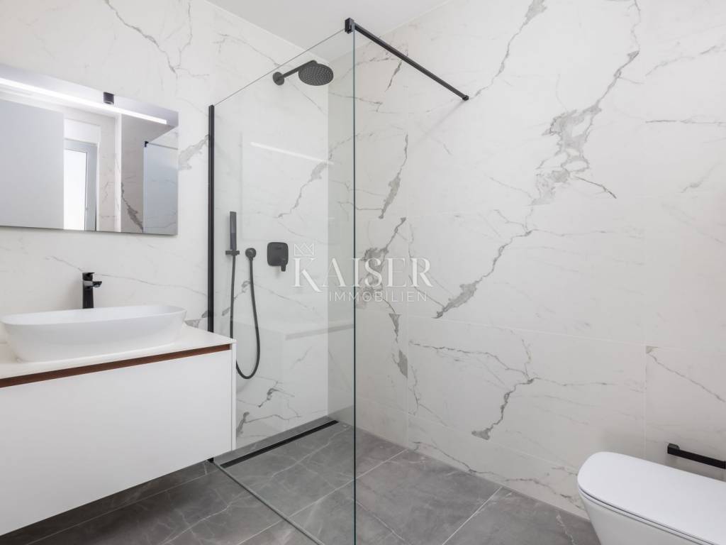 For sale is a luxurious 2-bedroom + living room apartment in a new building with a swimming pool, elevator and underground garage located in a quiet location near the sea and the center of Opatija! This top-notch property offers you modern design, luxurious elegance, privacy and comfort, as well as a spectacular view of the center of Opatija and the sea, and with its modern architectural style and the finest materials, it sets new standards of luxury. Thanks to its location in a quiet part of Opatija, you will enjoy a sense of privacy and peace, while at the same time enjoying a stunning view of the center of Opatija and the charming Adriatic coast. 2ND FLOOR RIGHT - P7 Price - €718,500 MAIN FEATURES • 2 bedrooms, 2 bathrooms, 1 toilet • total apartment area expressed with coefficients: 110.54 m2 • gross apartment area: 107.41 m2 • internal apartment area: 82.34 m2 • balcony: 25.07 m2 • 2 garage parking spaces: PM11 of 13.25 m2, PM12 of 14.66 m2 • 2 storage rooms: BIC3 of 1.68 m2, BIC4 of 1.73 m2 This beautiful apartment is designed for maximum comfort and luxury. At your disposal are an entrance hall, toilet, two bedrooms with en-suite bathrooms, a spacious living room with kitchen and dining room, a spacious terrace - a place to socialize with family and friends and enjoy a truly spectacular view of the sea and Opatija. EQUIPMENT • fan coil system for energy-efficient heating and cooling • top-quality aluminum joinery • electrically operated aluminum blinds • top-quality sanitary facilities • security entrance doors • elevator • shared swimming pool This top-quality property offers you an incredible luxurious living space with high-quality equipment and a spectacular sea view, and is located in the immediate vicinity of the sea and beaches and all necessary amenities, making your everyday life extremely practical and comfortable. Opatija, the pearl of the Adriatic, is one of the most sought-after and most desirable places to live and vacation in Croatia. Its irresistible combination of natural beauty, rich history and architecture, and modern amenities make it a truly extraordinary and enchanting destination. PRICE The stated price refers to a fully completed apartment on a turnkey basis, without furniture. The price includes VAT, the buyer is exempt from paying real estate tax. In the case of purchase from a company registered in Croatia, a full VAT refund is possible after the sale. The location is far from major cities: Rijeka 20 minutes drive, Zagreb 1 hour 30 minutes, Vienna 5 hours, Berlin 10 hours, Trieste 1 hour 30 minutes, Ljubljana 1 hour 40 minutes, Pula airport 1 hour 30 minutes, Krk airport 40 minutes. For all inquiries, please contact your agent Eli Lovko tel. +385 (0)916133776 Agency fee is 3%+VAT