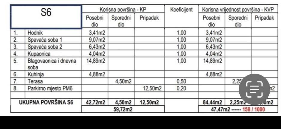 uz stan je etažirano jedno vanjsko parkirno mjesto koje je u cijeni stana